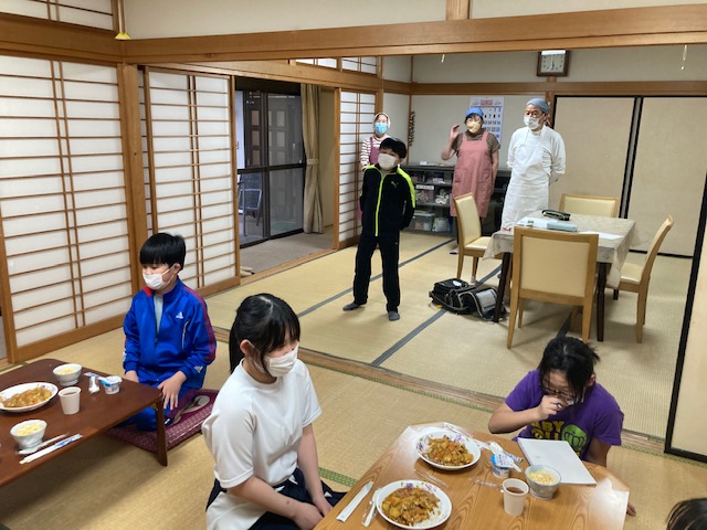 3か月ぶりにみんなの水曜食堂が再開しました。嬬恋も、少しずつ春を感じる季節となり、食事の前に会場の近くの桜を見に行っていました。今回は、みんなが大好きチーズカレーライスです。野菜たっぷりで美味しくいただきました。ごちそうさまでした。
