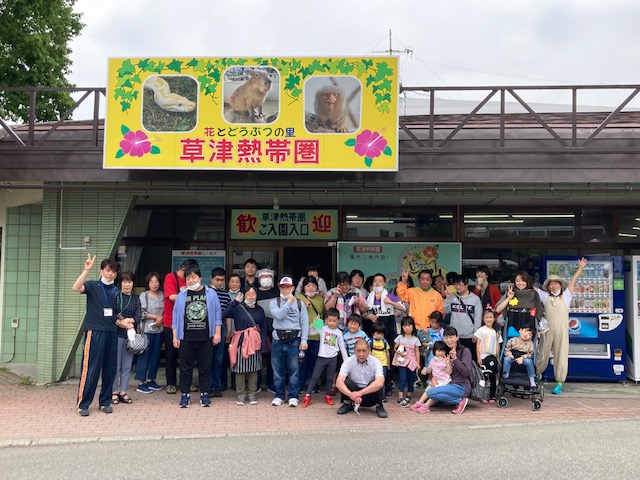 6月18日、草津町社会福祉協議会、長野原町社会福祉協議会、嬬恋村社会福祉協議会の共催で、なかよしクラブで草津熱帯圏へ行ってきました。27名の方が参加され、動物と触れ合ったり、餌をやったりしました。1時間半という短い時間でしたが、久しぶりのなかよしクラブの開催に、皆さん楽しんでいました。