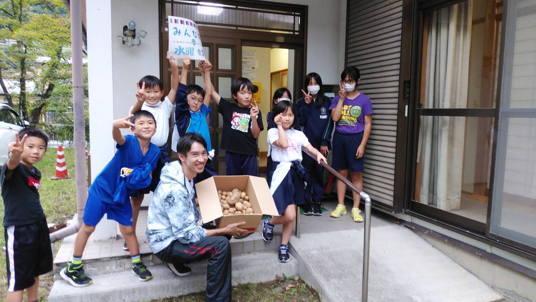 9月21日のみんなの水曜食堂の様子です。嬬恋高校の先生方が、生徒の皆さんが授業で作ったじゃがいもをたくさん持ってきてくださいました。嬬恋高校は、以前からJRC部の生徒さんが子供たちと遊んでくれたりと、交流をさせていただいています。じゃがいもは、早速今回のおみそ汁に入れていただきました。ごちそうさまでした。