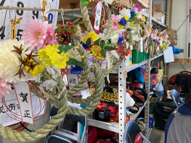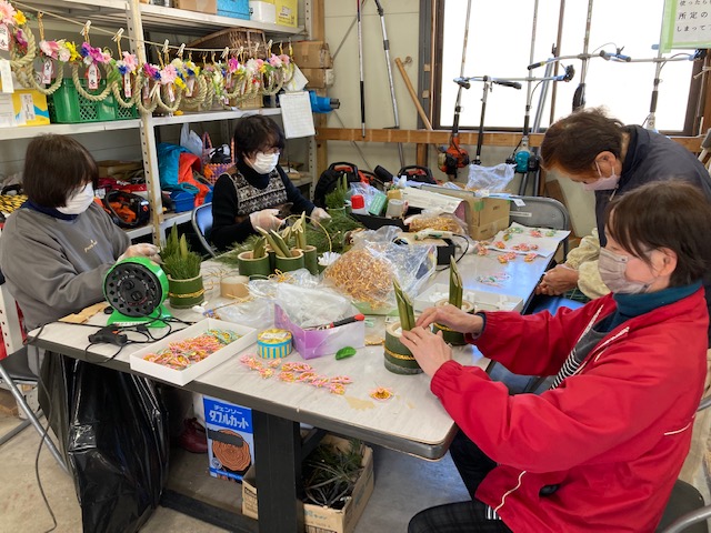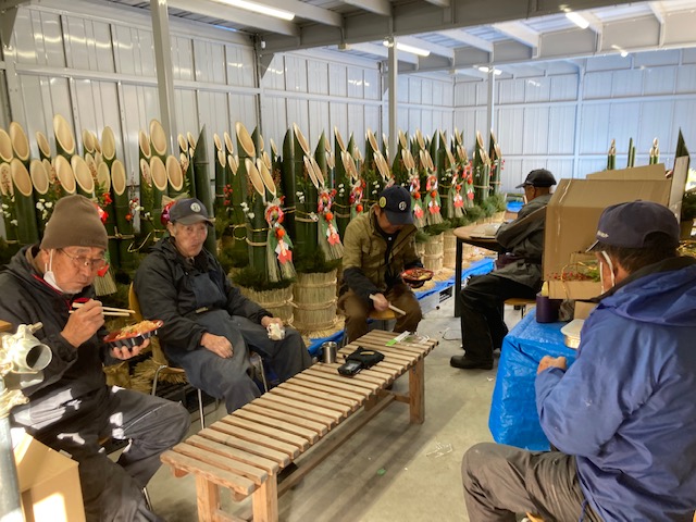 シルバー人材センターの今年最後の大仕事、門松作りも佳境に入っています。今回はいつも元気に働いてくださっている会員さんにオフショットを載せてみました。お昼ご飯を食べて、午後の仕事のために気合の注入中です。