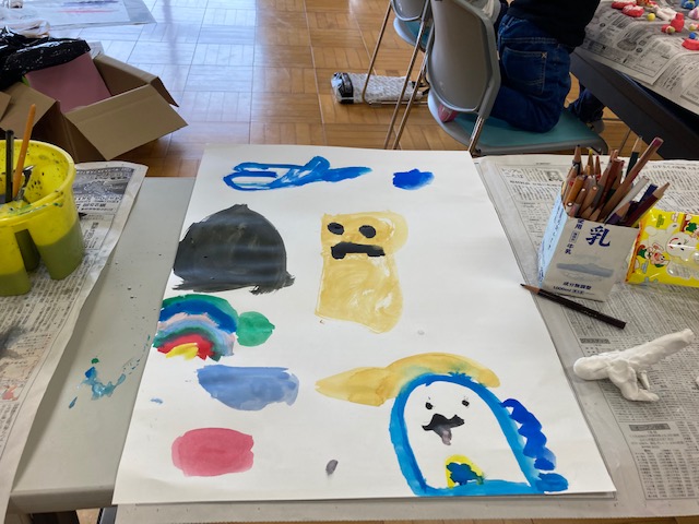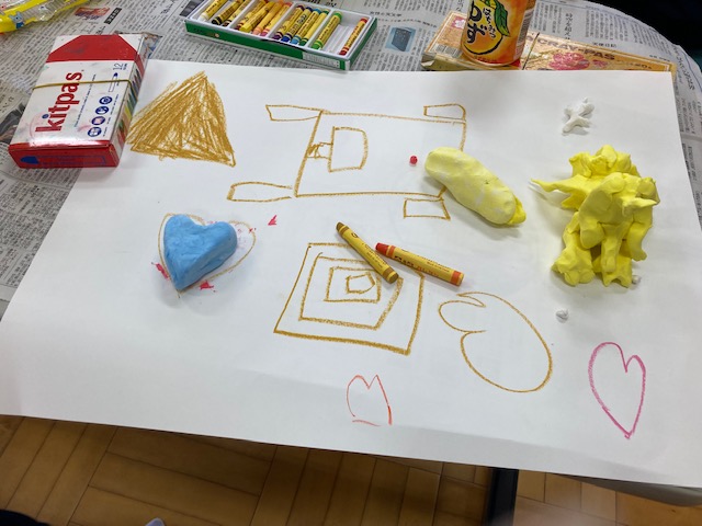 アトリエもくは、月に1回、知的障害者の余暇活動として、絵画や書道など自由なアート活動を行っています。今月は、講師の方の都合が悪く来られなかったため、自由に作品に取り組んでもらいました。子供達は、粘土で繭玉を作ったり、エジプトのピラミッドやスフィンクスを作っていました。子供達の発想はとてもユニークで、新しい発見をもらっています。そして、いつもはお話をしない参加者の方が、「雨に濡れて・・・、冷たい雨が・・・」と繰り返し歌っていました。何の歌かご存知の方はいらっしゃいますか?