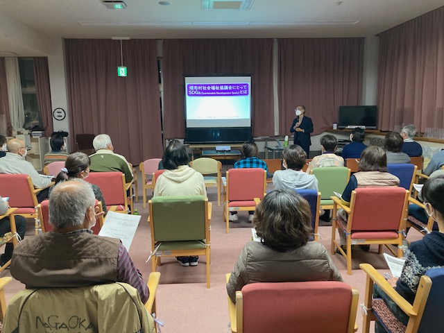 1月24日(火)、業務終了後に職員全体研修を行いました。講師に高崎商科大学特任教授熊倉浩靖様をお招きし、『嬬恋村社会福祉協議会にとってSDGSとは』という内容で講演を行っていただきました。SDGsについて、言葉は聞いたことがあるけど実際はどのようなことを意識したり、行動に移していけば良いのだろうと思っていましたが、群馬県の偉人のお話や、嬬恋村の風土や特性に合わせてお話をしてくださりました。新しいことに目を向けがちですが、昔からの風習や特性を活かしてSDGsについて考える良いきっかけになりました。大変興味深く、学びの多い研修となりました。