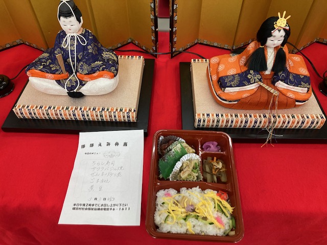 調理部では、ひなまつりにあわせてちらし寿司の配食弁当と、デイサービスの昼食をお出ししました。季節やイベントに合わせた食事は、ご利用者様に大変喜んでいただきました。