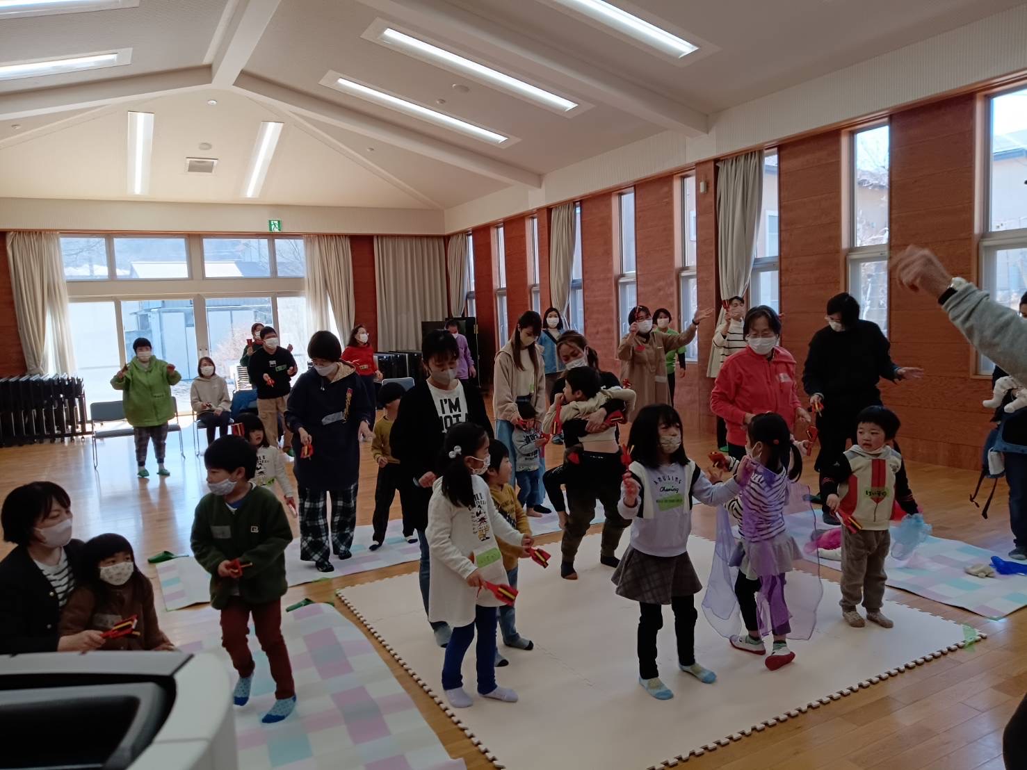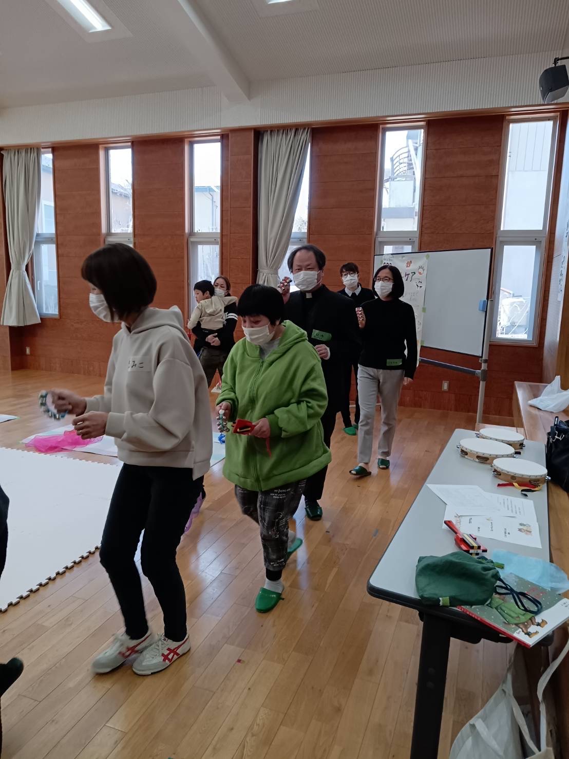 3月4日(土)、11時より大前活性化センターにて、講師に福田弘二先生をお招きし、ミュージック・ケアを開催しました。ミュージック・ケアとは、音楽に合わせて、楽器や小道具などを利用して心身に心地よい刺激を与える集団音楽療法のことです。みんなが知っている曲に合わせて体を動かしました。ちびっこから大人まで、みなさん楽しい時間を過ごし、大盛況に終了しました。