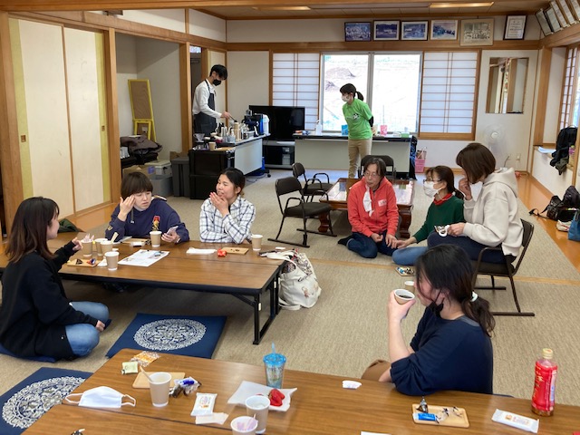3月4日(土)、13時30分より大前活性化センターにて、乳児から小学校低学年のお子さんを持つ保護者の方を対象とした子育てカフェを開催しました。昨年に引き続き佐久市にあるPORT OF COFFEEバリスタの古川さんにコーヒーを淹れてもらい、ゆっくりとした時間を過ごしていただきました。途中、古川さんによるコーヒーの淹れ方講座も行っていただき、皆さんから色々な質問が出て楽しい時間になりました。また、別室では草津町の高橋久恵先生に、子供たち向けにリトミックをしていただき、子供達も楽しい時間を過ごしました。