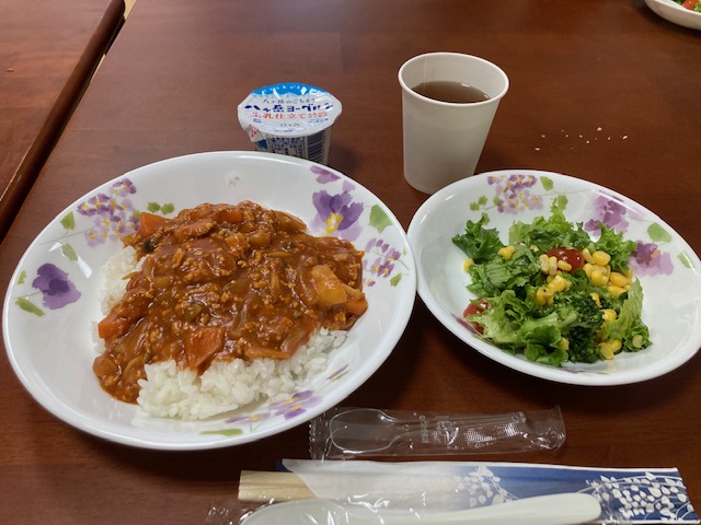 <12日メニュー:ハヤシライス、サラダ、ヨーグルト>