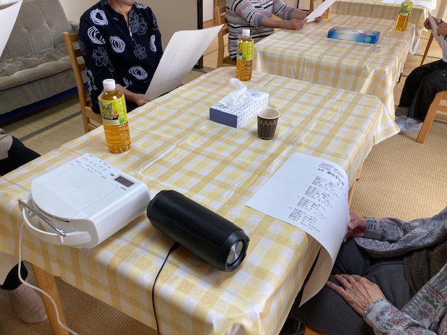 6月のほほ笑みカフェの様子です。今回は、「好きな曲を歌ったり、踊ったりしよう」でした。まず、みなさんが良く知っている嬬恋村の歌や嬬恋小唄、嬬恋音頭などを歌ったり、盆踊り風に手踊りをしてみました。その後はみなさんのリクエストで好きな歌謡曲をかけて楽しいひと時を過ごしました。ほほ笑みカフェは、毎月第3金曜日に行っています。お気軽にお立ち寄りください。