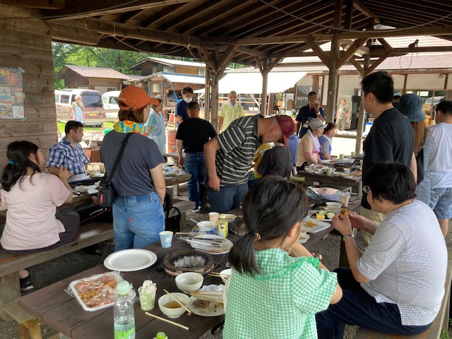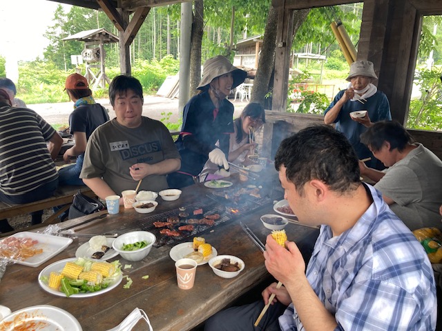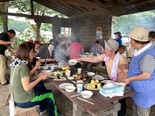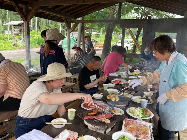 7月22日(土)、草津町社会福祉協議会、長野原町社会福祉協議会、嬬恋村社会福祉協議会の共催で、なかよしクラブでバーベキューを行いました。32名の方が参加され、心地よい天気の中、美味しいお肉を食べて、流しそうめんやスイカ割りをして楽しみました。