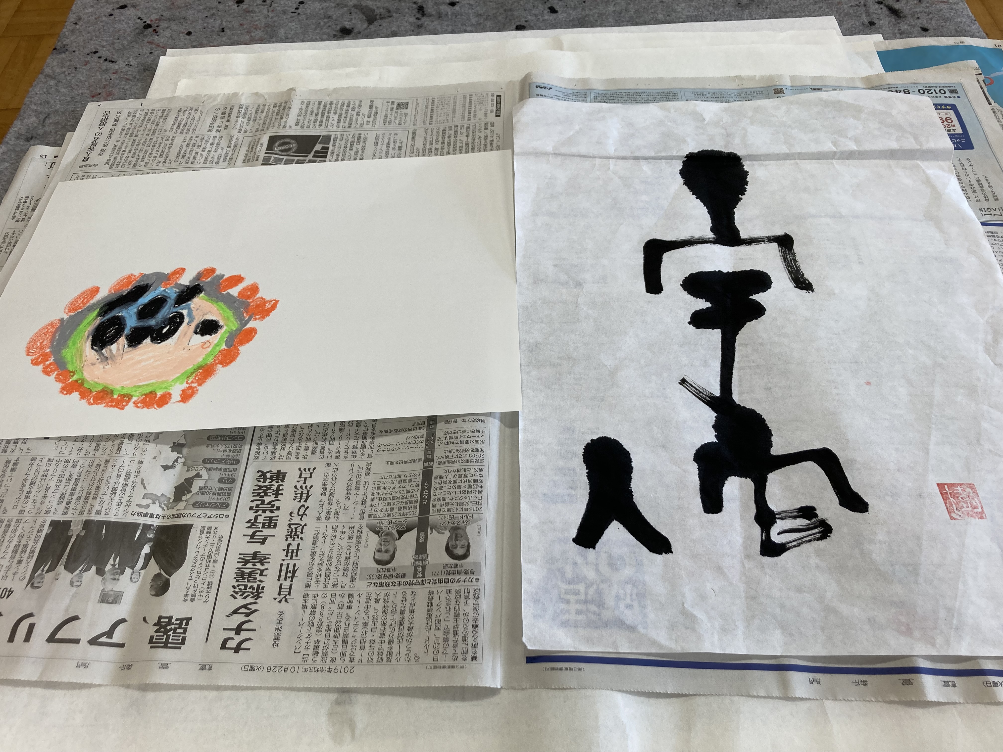 アトリエもくは、月に1回、知的障害者の余暇活動として、絵画や書道など自由なアート活動を行っています。1時間30分という時間ですが、思い思いに自由なアート活動を行っています。今回も、面白い作品がたくさんできました。