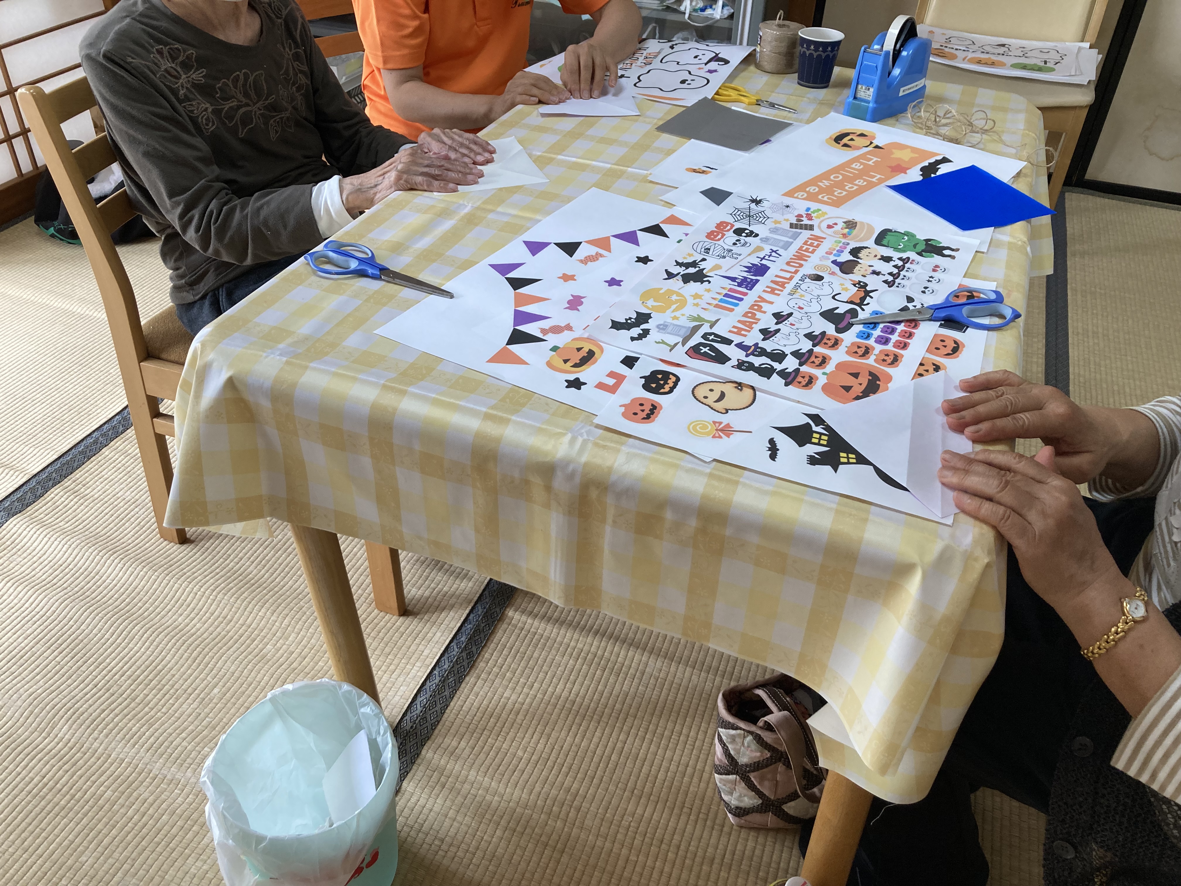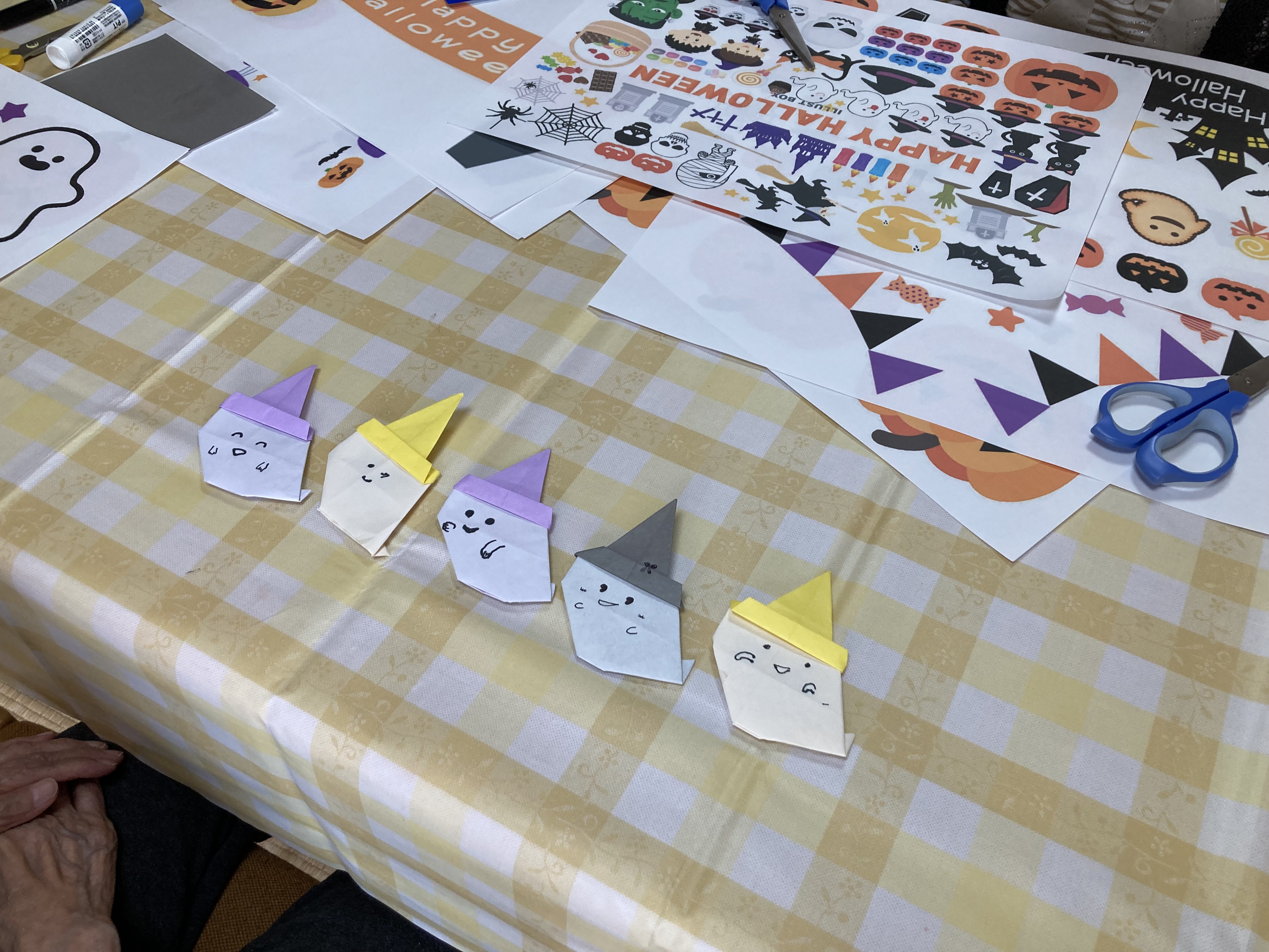 9月のほほ笑みカフェの様子です。今回は、「紙を切って何かを作ろう」です。来月のハロウィンに向けて、折り紙でおばけを作ったり、かぼちゃやなどのハロウィン仕様のイラストを切り抜いて、ひもに張り付けてみました。来月は、飾りつけをしてハロウィンパーティ―の予定です。ほほ笑みカフェは、毎月第3金曜日に行っています。お気軽にお立ち寄りください。
