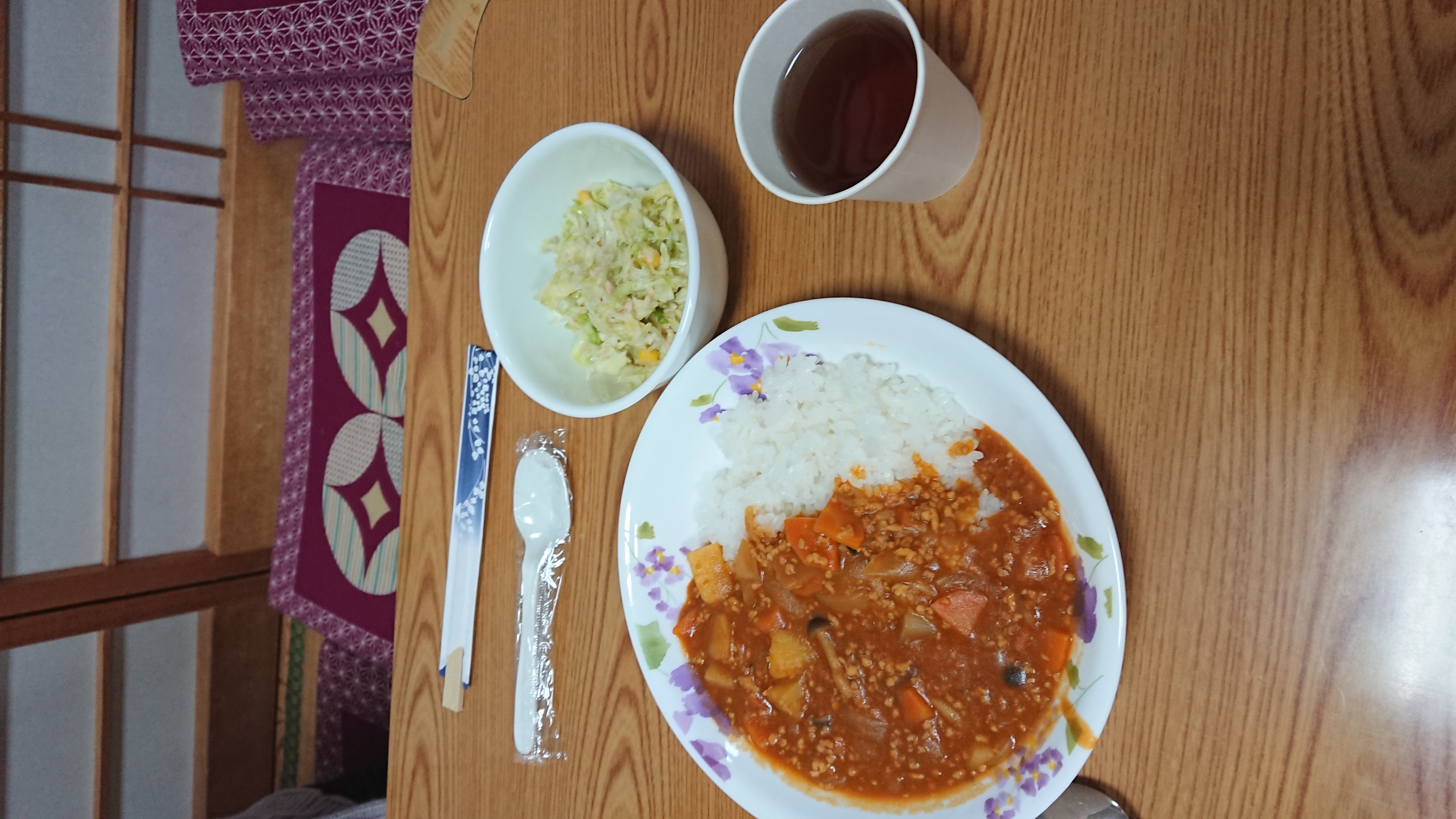 <18日メニュー:ハヤシライス、キャベツとツナのサラダ、ヨーグルト>