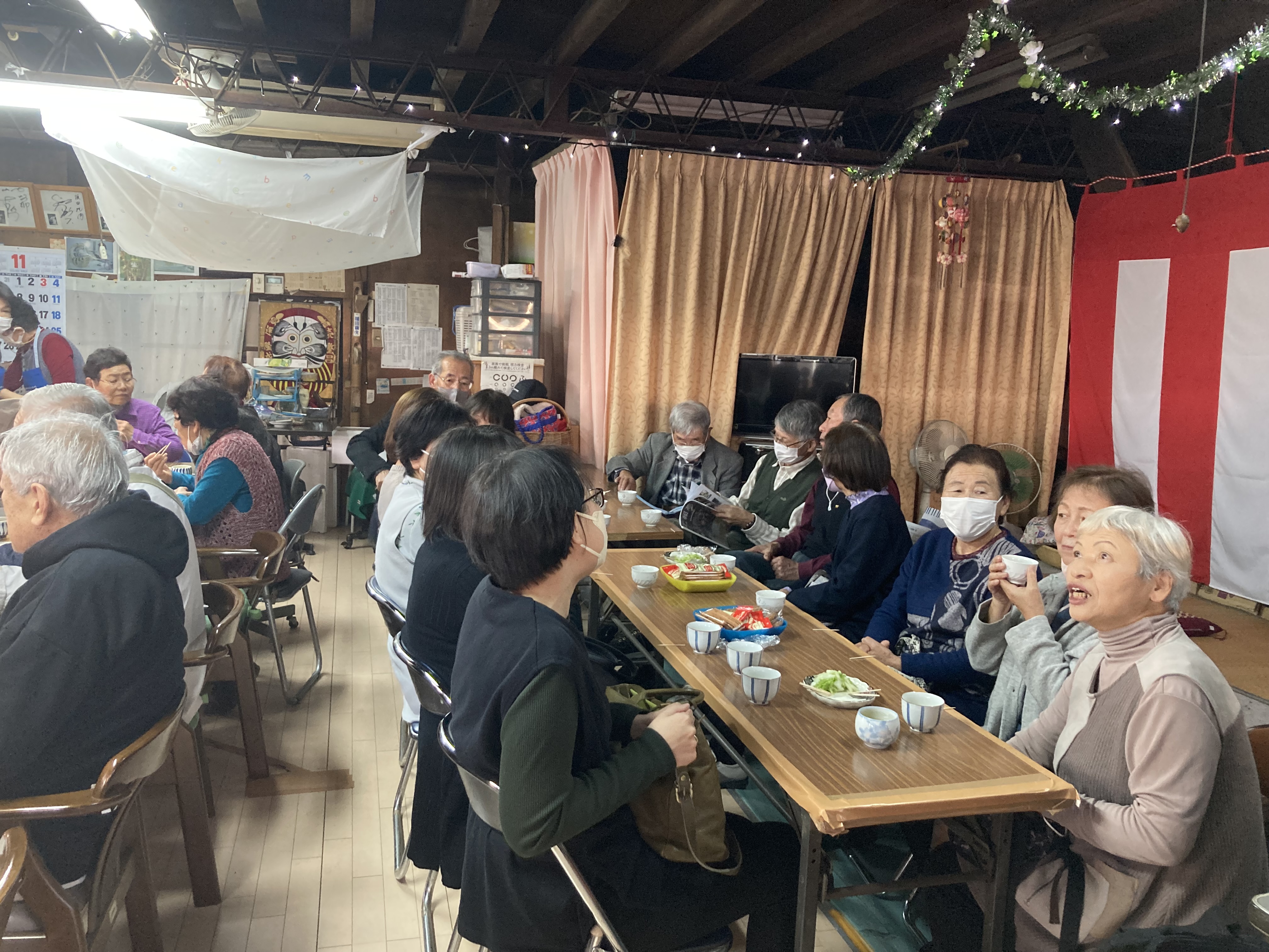 11月28日(火)、芦生田地区通いの場視察研修に同行させていただきました。高崎市第1層生活支援コーディネーターの目崎氏に依頼し、高崎市「居場所八起き」を見学させていただきました。参加者同士で、質問や意見交換をされ、とても実りのある視察研修となりました。また、このような視察研修を通して、新しい方達と触れ合ったり、参加者同士で出かけたりすることで、介護予防にもつながると感じました。とても良い視察研修となりました。