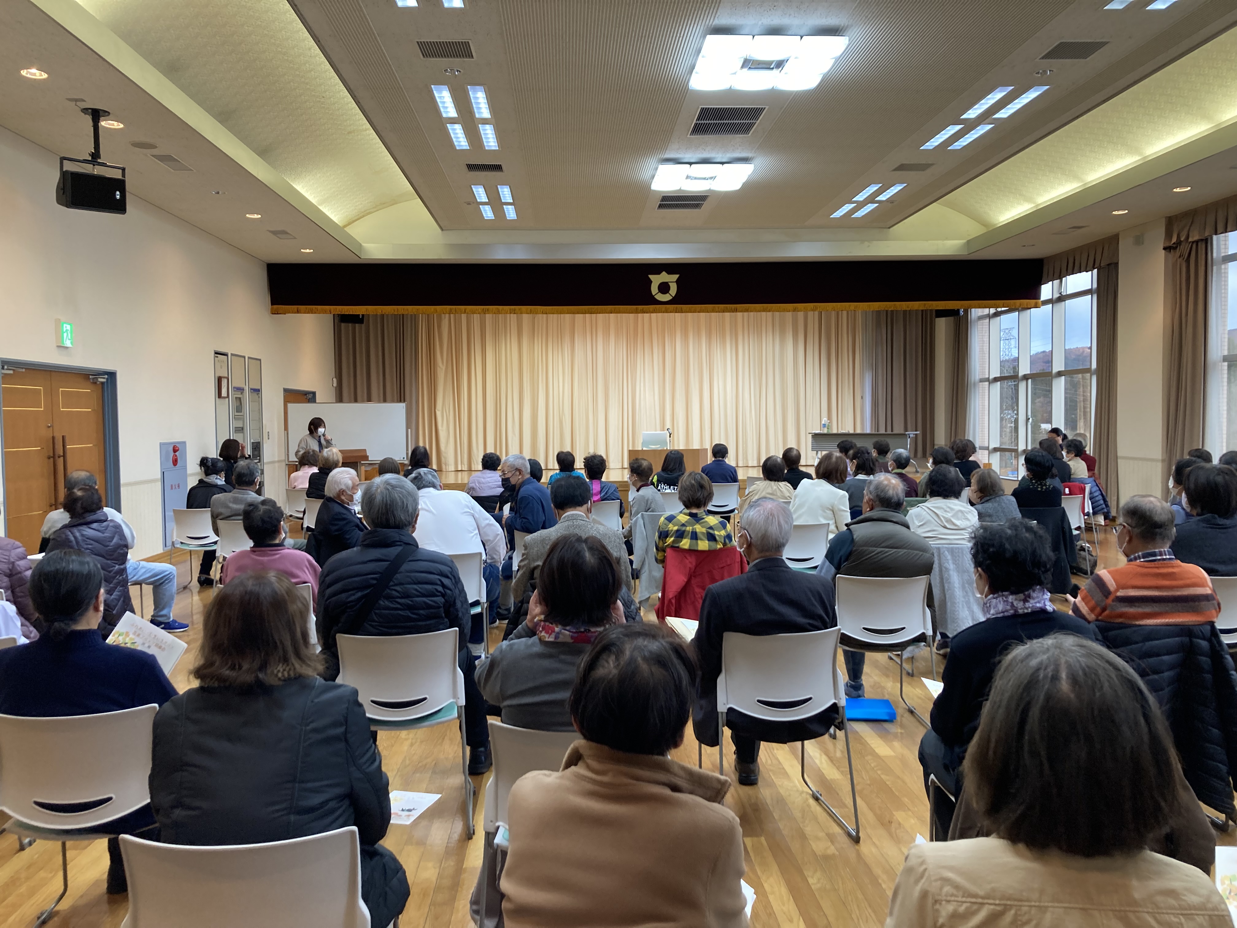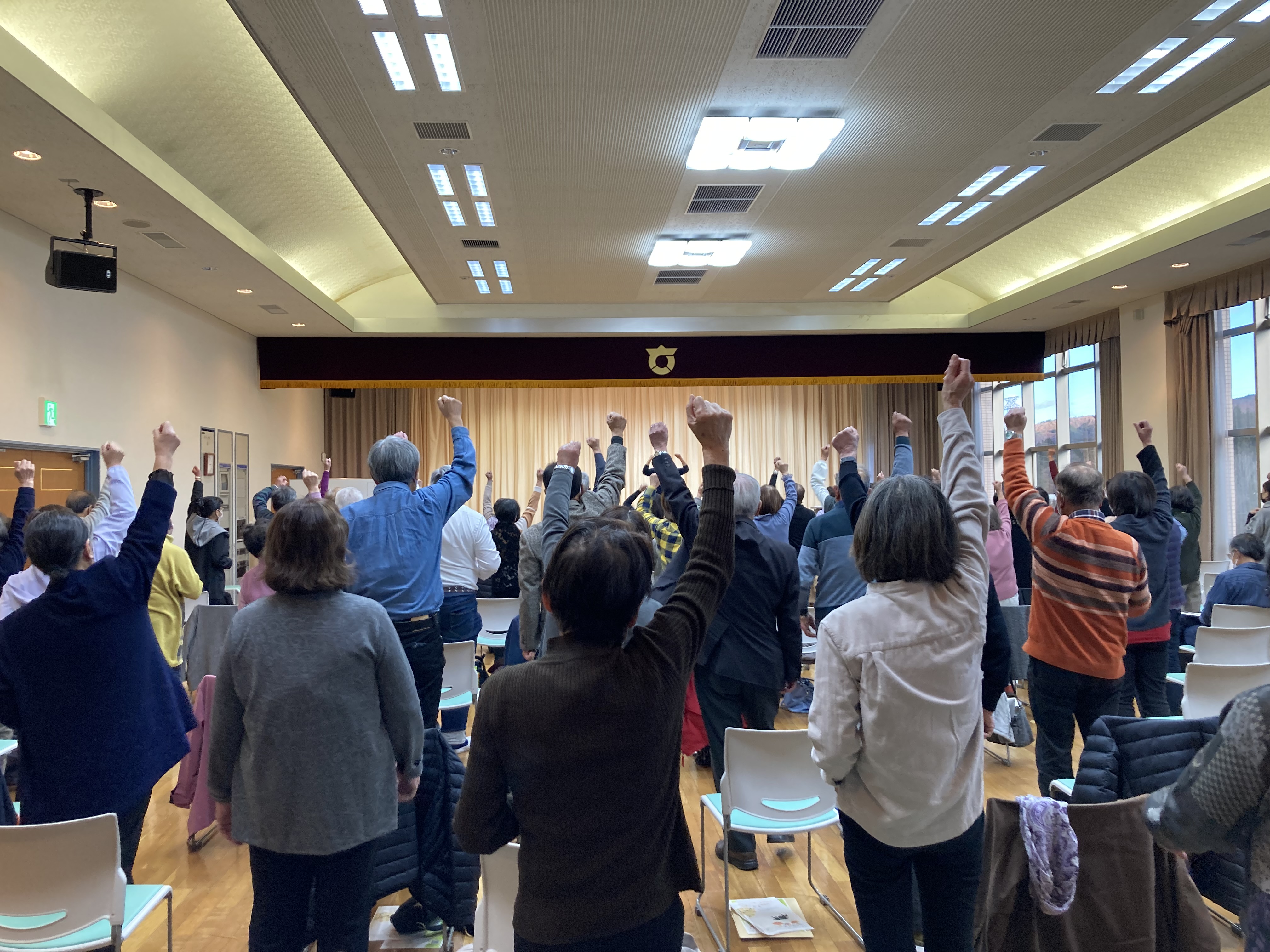 11月30日(木)、4年ぶりの参集となるふれあい・いきいきサロン吾妻ブロックが、高山村いぶき会館で開催されました。今回は、「サロンで実践できる楽しい身体の動かし方」として、講師に健康運動指導士の鈴木聡子氏をお招きし、講習とレクリエーション研修が行われました。嬬恋村からは、サロンの運営者や民生委員など16名の方が参加されました。すぐに取り入れられものが多く、参加者たちからは、「とても分かりやすくて良かった。」や「嬬恋でも行って欲しい。」などの声が上がりました。