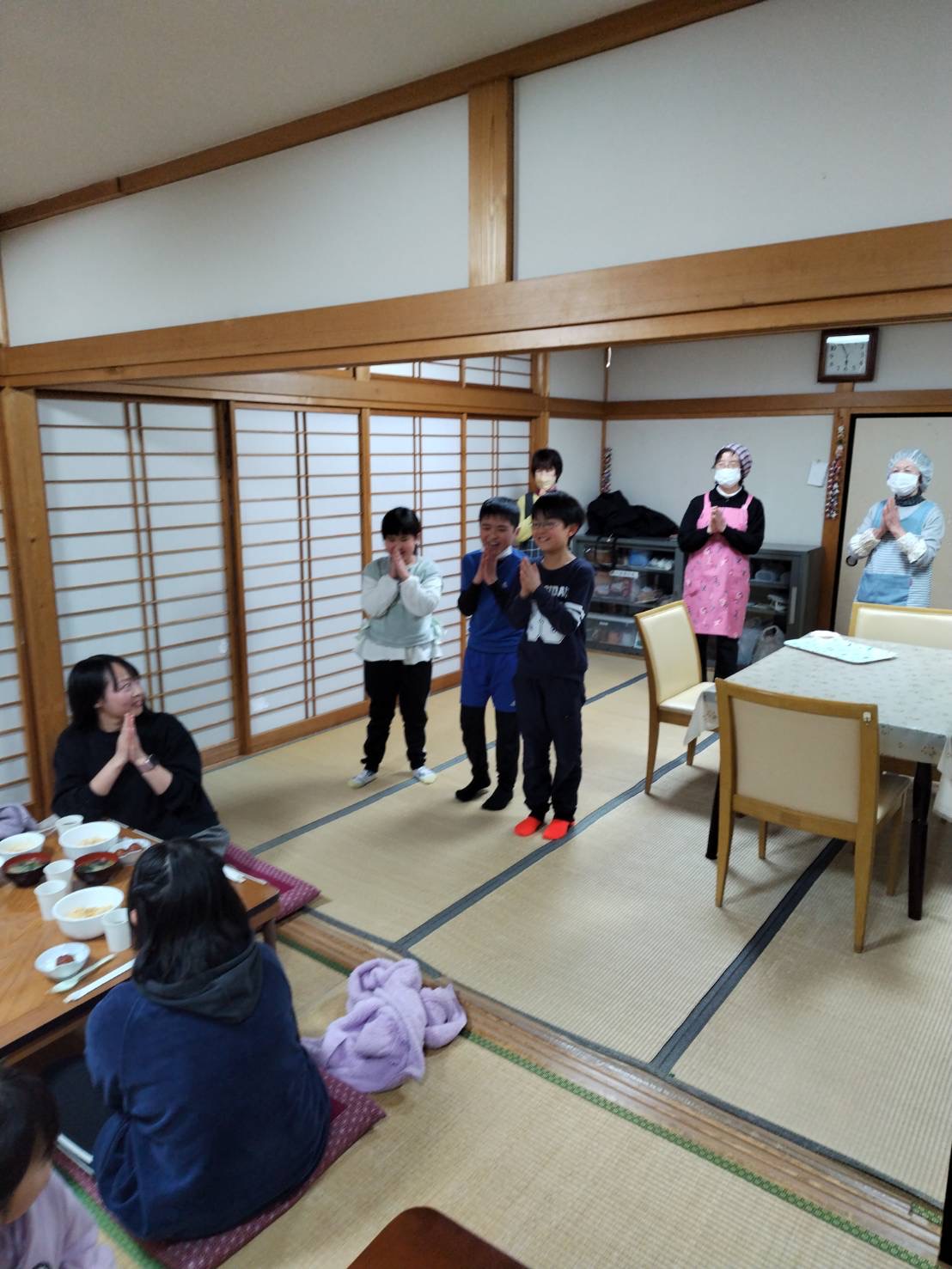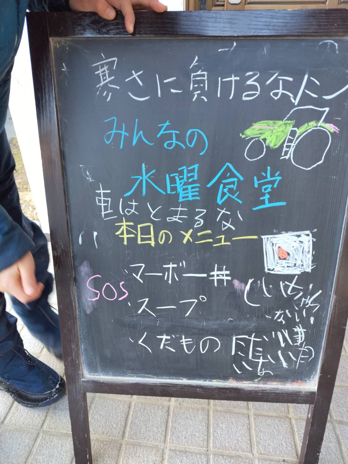2月28日のみんなの水曜食堂の様子です。今回は比較的暖かかったため、屋外で駆けずり回って遊んでいました。とは言え、子供達は元気ですが、寒さに負けないために、皆が大好きな麻婆豆腐丼にしました。特別に、肉団子付きです。今回も美味しくいただきました。ごちそうさまでした。