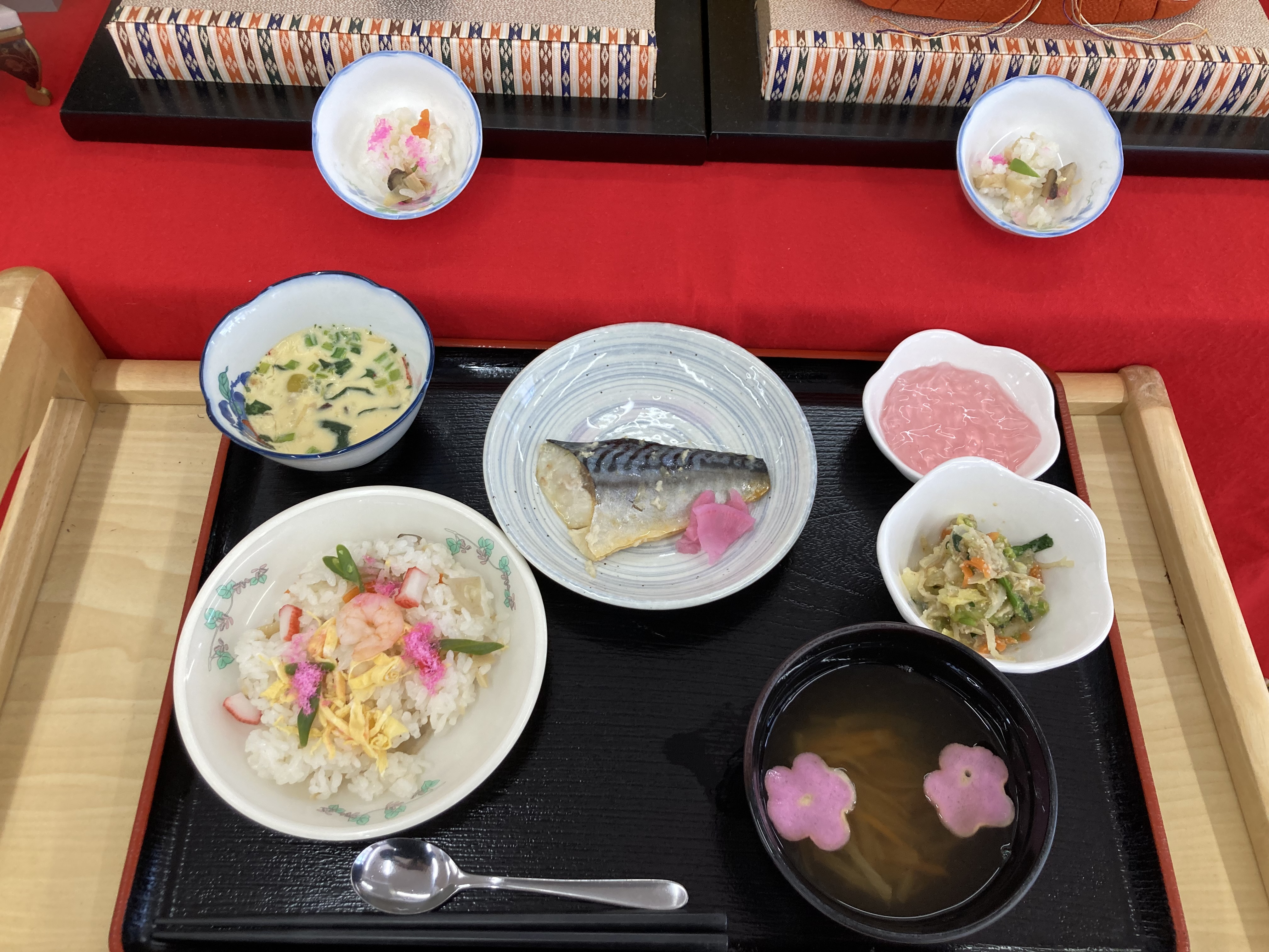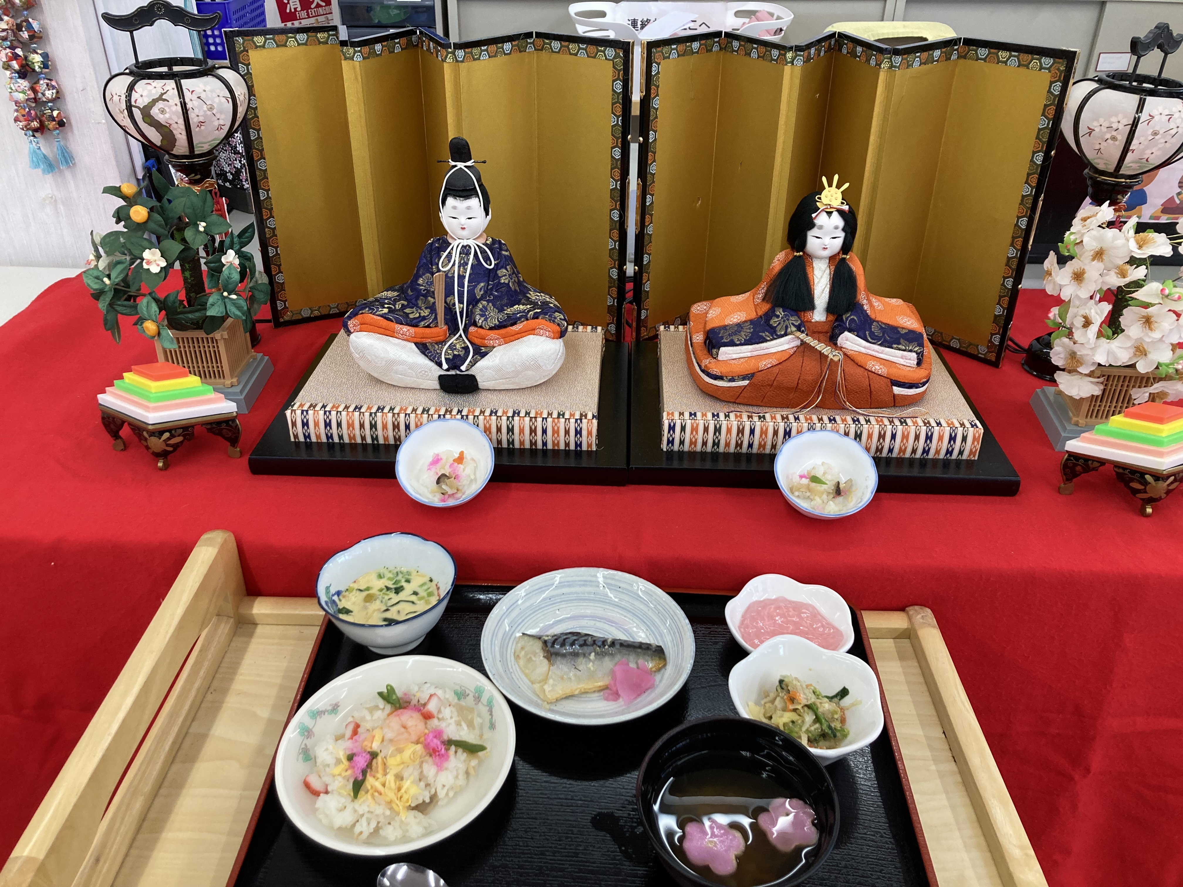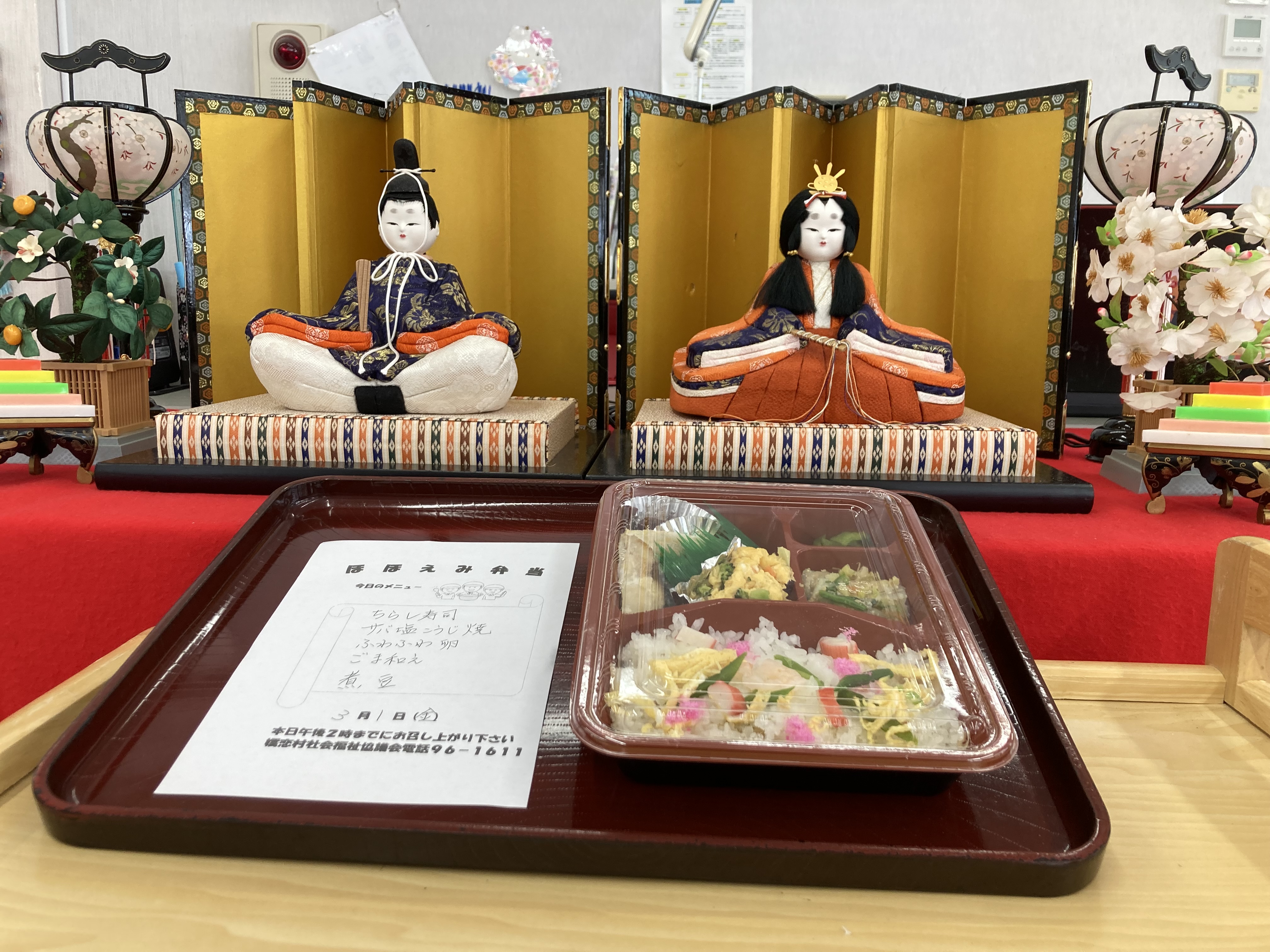 調理部では、ひなまつりにあわせて、ちらし寿司の配食弁当と、デイサービスの昼食をお出ししました。季節やイベントに合わせた食事は、ご利用者様に大変喜んでいただいております。