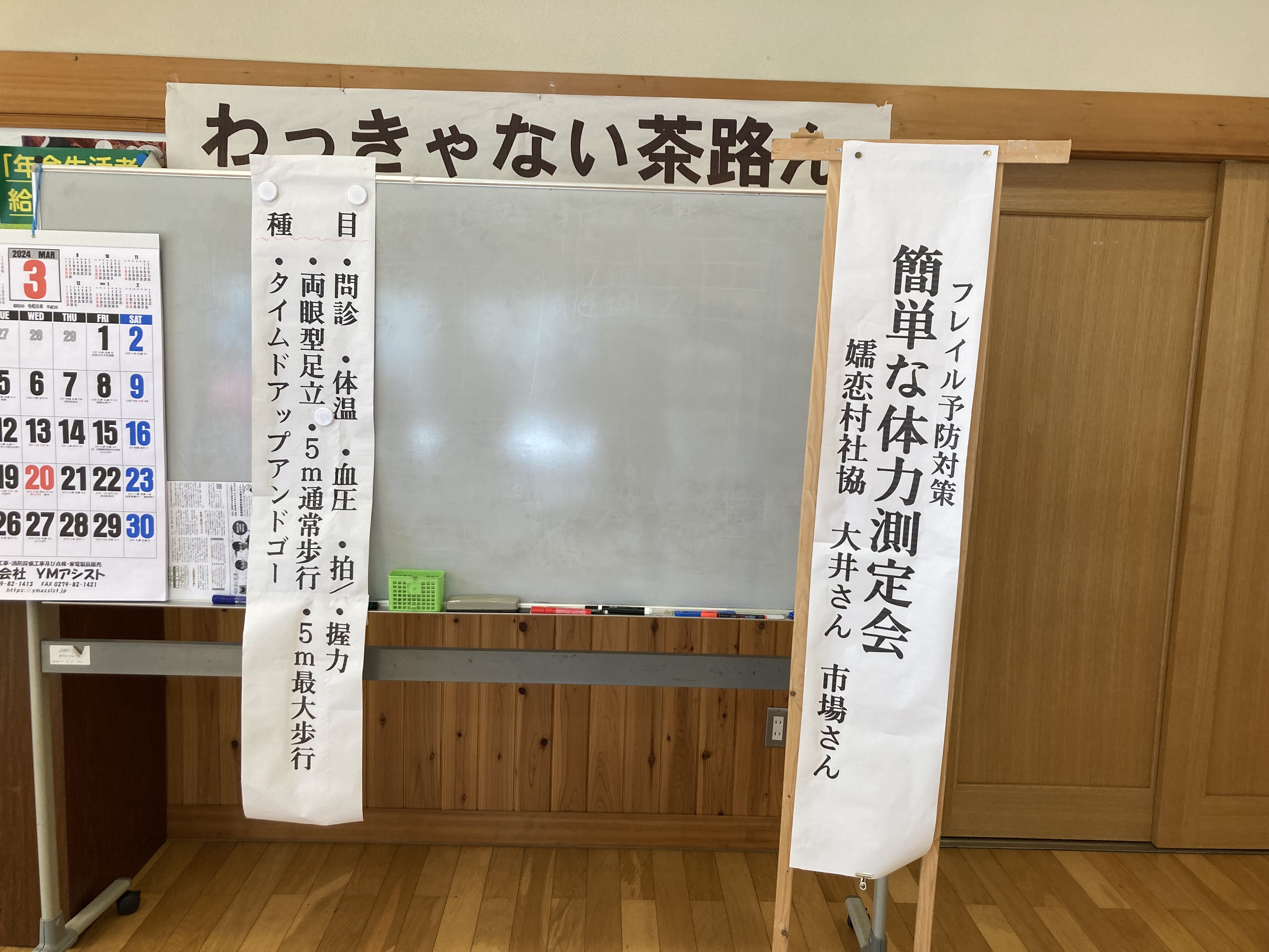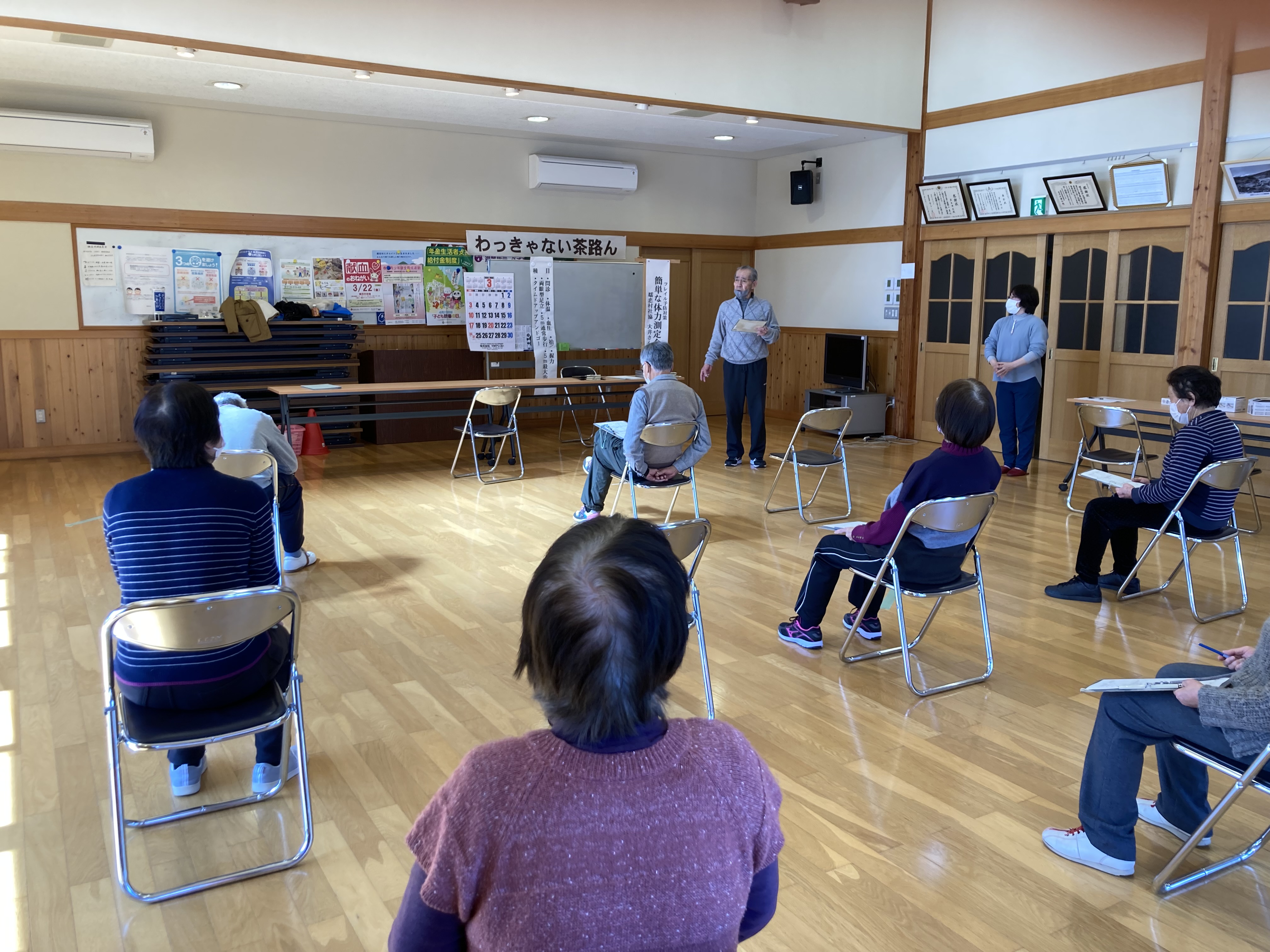 芦生田地区わっきゃない教室で体力測定会を行いました。社会福祉協議会の職員が出向き、握力測定や5m歩行など行いました。前回の結果と見比べ、この結果が悪かったや、前回とほとんど変わってないな!などとお話をされていました。その後は、皆さんとお話をしながらお茶会をしました。いつまでも元気でいていただくためにも、運動や社会参加をするフレイル予防教室に参加していただきたいと思います。