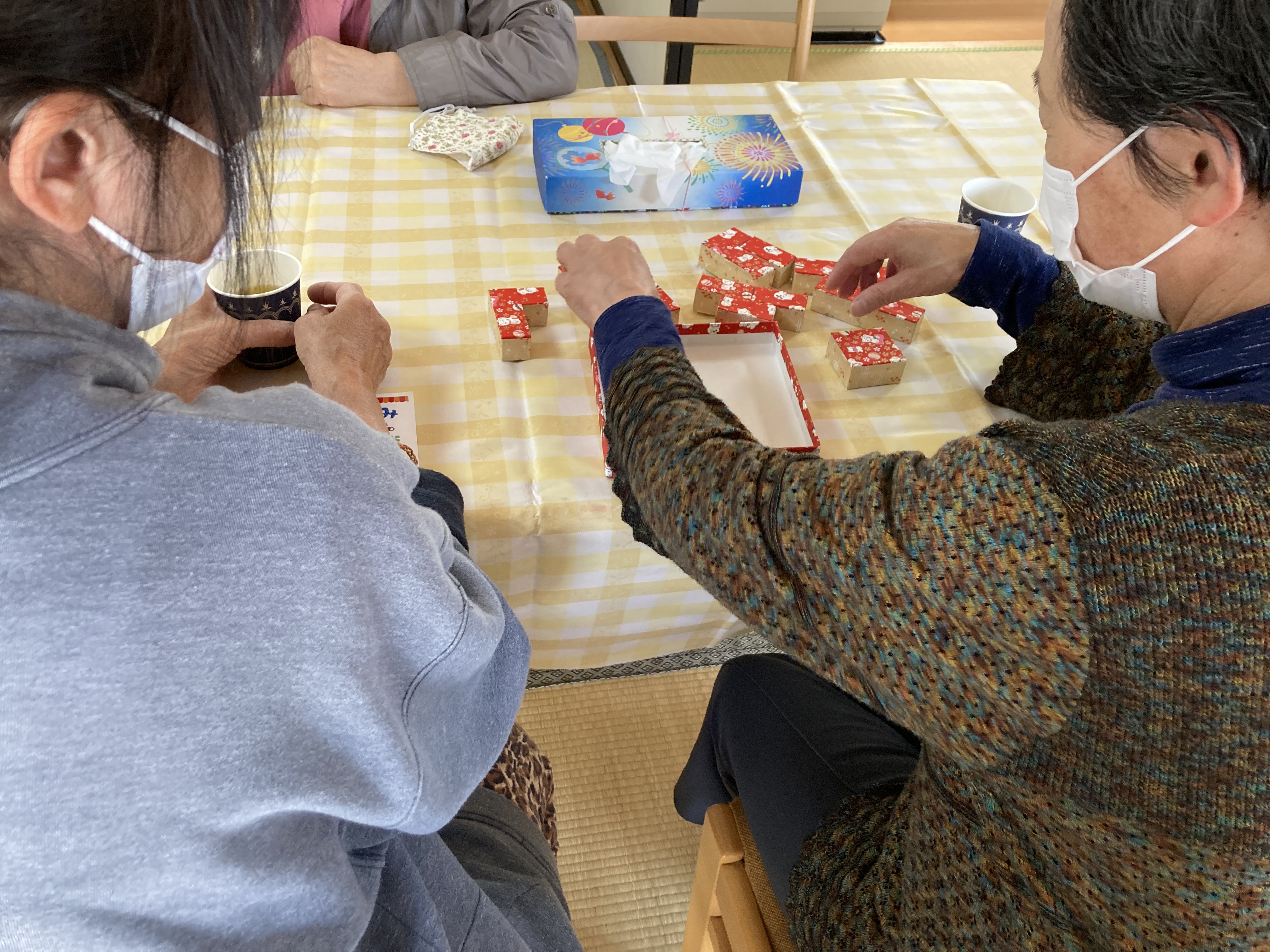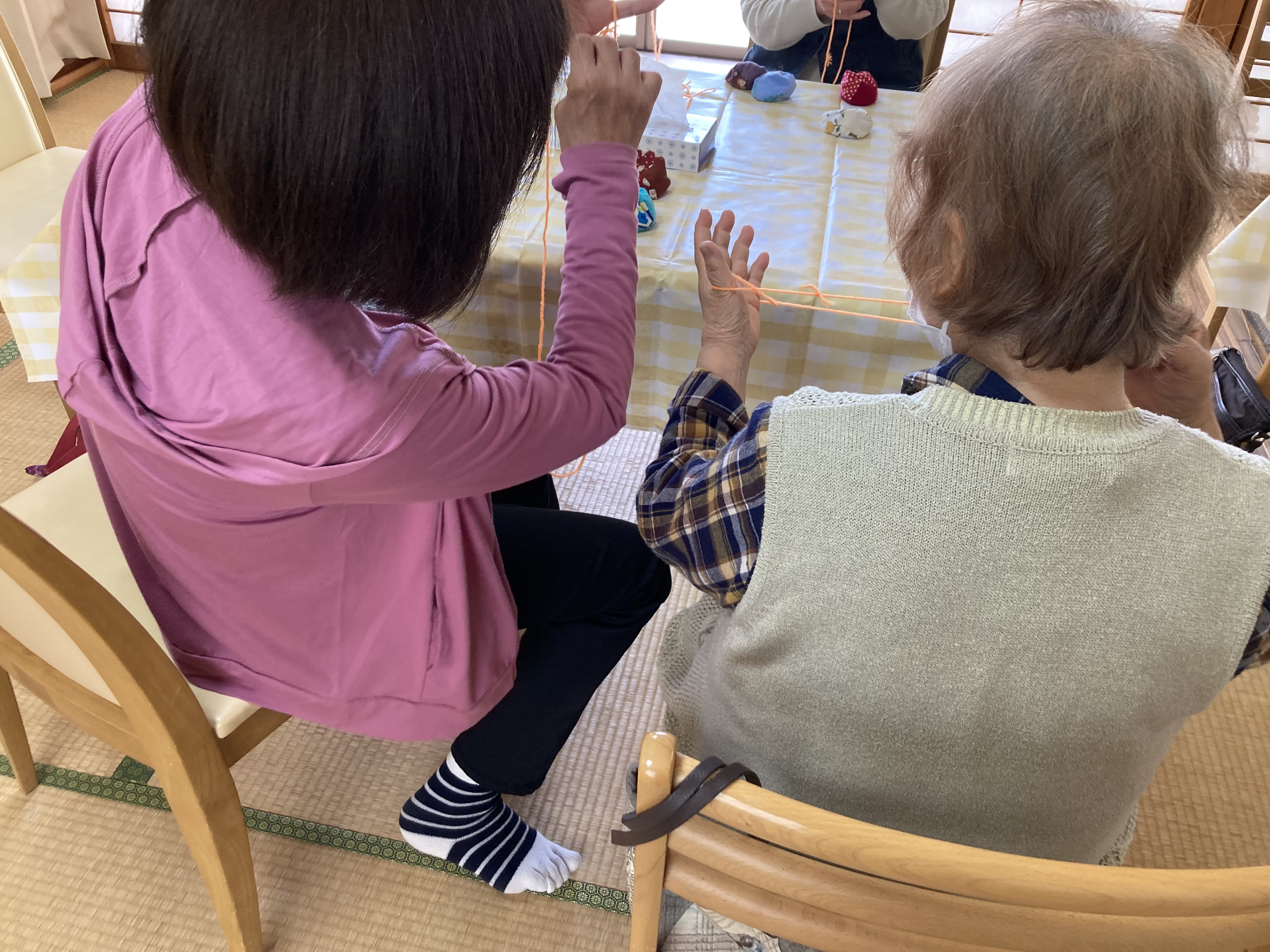5月のほほ笑みカフェの様子です。今回は「昔の遊び」です。お手玉や折り紙、あやとりなどをしました。昔を思い出しながら、みんなで教え合いをして、時間を忘れて遊びました。ほほ笑みカフェは、毎月第3金曜日に行っています。お気軽にお立ち寄りください。