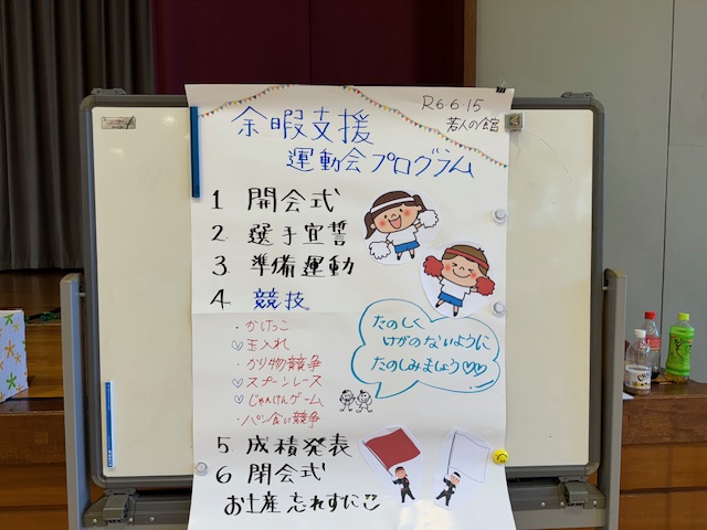 6月15日(土)、草津町社会福祉協議会、長野原町社会福祉協議会、嬬恋村社会福祉協議会の共催で、なかよしクラブの運動会が開催されました。3チームに分かれて行われたチーム戦や、個人戦など、皆さん好きな競技に参加され、心地よい汗を流していました。参加者の皆さんもそうですが、ボランティアや職員も一緒に楽しく体を動かし、楽しいひと時を過ごしました。