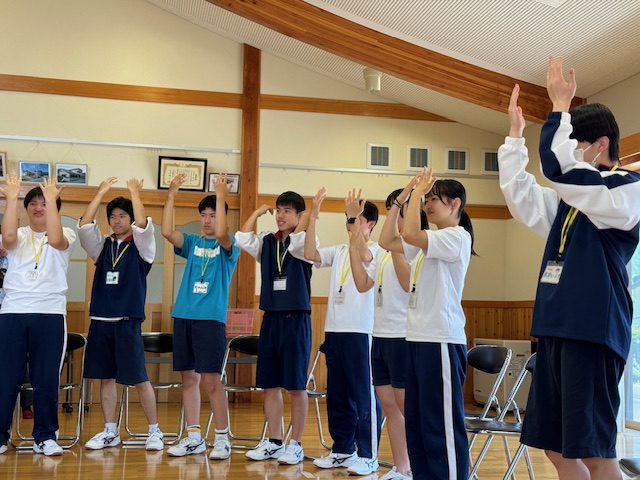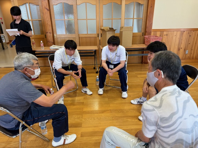 6月20日(木)、嬬恋高等学校の生徒と芦生田地区で行われている『わっきゃない教室(フレイル予防教室)』の方々との、地域学習が行われました。今回は、地域の高齢者を知ってもらい、世代を超えた交流を図ることを目的としています。嬬恋高等学校の2年生11名と、芦生田地区の高齢者12名が交流を行いました。わっきゃない教室で行っている脳トレをしてみんなの緊張をほぐした後に、一人ひとり自己紹介を行いました。その後は、4グループに分かれて、質問やトークタイムです。始まる前は、会話が弾むのか心配でしたが、そんな心配は関係なく、生徒たちが事前に制作した質問サイコロを使い、どのグループも話が止まらなく、時間が足りなくなってしまいました。生徒たちが、高齢者の話しに相槌をうったり、前のめりになり真剣に話を聴く姿に感動しました。