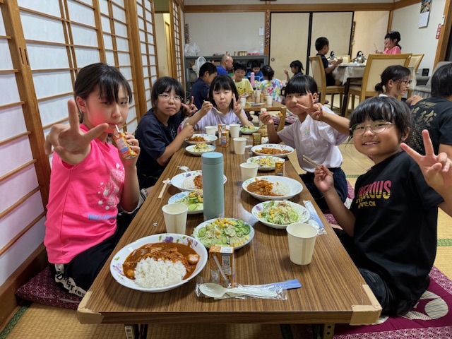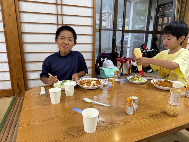 7月10日のみんなの水曜食堂の様子です。今回は、野球チームリトルファイターズの子供達16名も練習後に食事に来てくれました。事前情報でそれほど食べないよと聞いていましたが、おかわり、おかわりの連続でご飯もハヤシライスをあっという間に無くなってしまいました。元気も良かったですが、きちんと挨拶をしたり、片付けを手伝ってくれたりと大変楽しい食堂になりました。いつも参加してくれる子供たちにも良い刺激になったと思います。次回来てくれる時には、たくさんのご飯を作って待っています!