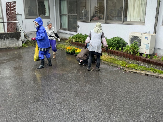 7月11日、大前やすらぎ会の皆さんが、嬬恋村デイサービスセンター施設内の庭の草むしりと花植えのボランティアをしてくださりました。途中雨が降ってきてしまい雨の中の作業になってしまいましたが、大変きれいになりました。毎年、ありがとうございます。