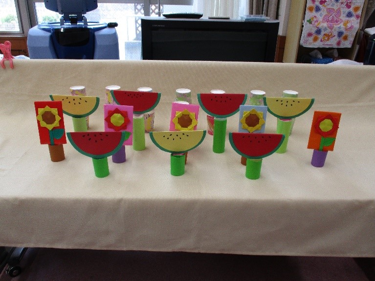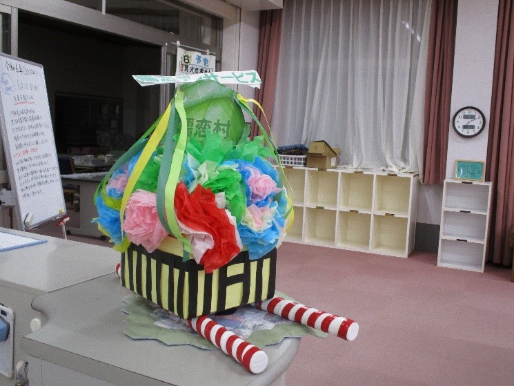 利用者様が作った風鈴でデイルームを飾りました。