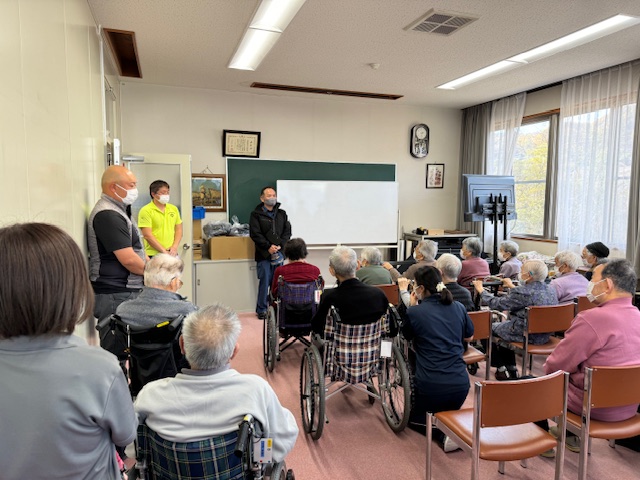 11月12日(火)、デイサービスセンターの火災避難訓練を行いました。利用者様を始め、職員も慌てず、落ち着いて避難ができました。訓練終了後は、消防署長さんより訓練の講評や機器の使い方についてご指導をいただきました。日頃から防災意識を大事にしようを改めて思いました。