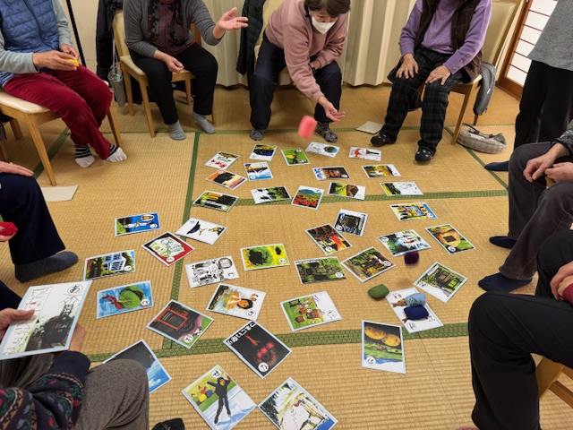 1月のほほ笑みカフェの様子です。今回は『カルタ』です。懐かしいいろはカルや、オリジナルの嬬恋カルタをつかったカルタボッチャを行いました。皆さん、どんな時も勝負ごとに手加減はありません!多くカルタを取った方には、盛大な拍手が送られました。ほほ笑みカフェは、毎月第3金曜日に行っています。お気軽にお立ち寄りください。