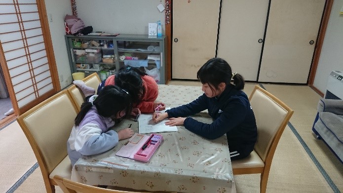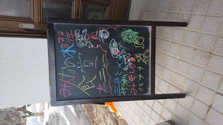 お絵かきをしたり、かくれんぼをしたりと食事ができるまで楽しそうに過ごしています。中には「外に行ってくる」と玄関の扉を開けっぱなしで飛び出していく子も・・・。大人は玄関を閉めて、ヒーターの前に陣取っていました。