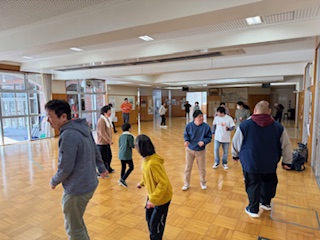 ダンス・ダンス・ダンスは、月に1回、知的障害者の余暇活動として、講師の先生をお招きし、ダンス教室を行っています。今回はとても寒かったので皆さん何故だか一列に。一列に並んだ上には暖房があるのです。ご興味のある方、ぜひお待ちしております!