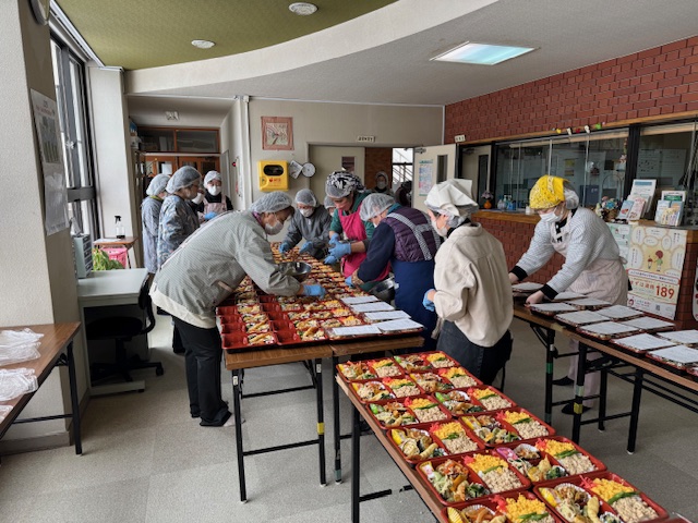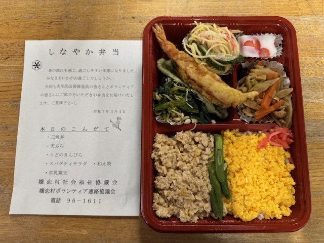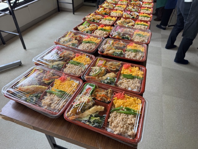 3月4日に、今年度3回目の80歳以上一人暮らしの方への配食サービスが行われました。今回は117食を食生活改善推進委員の皆さんにお弁当を作っていただき、ボランティアの方にお届けをしていただきました。今年度はこれで最後となります。来年度もお楽しみにお待ちください。