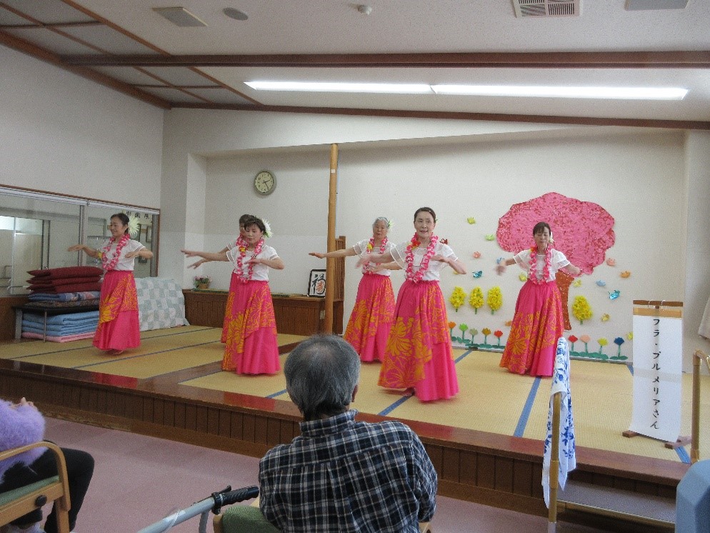 演芸会は琴星会様、あさまハーモニカクラブ様、つつじ会様、フラ・プルメリア様の皆さんが来所してくださいました。