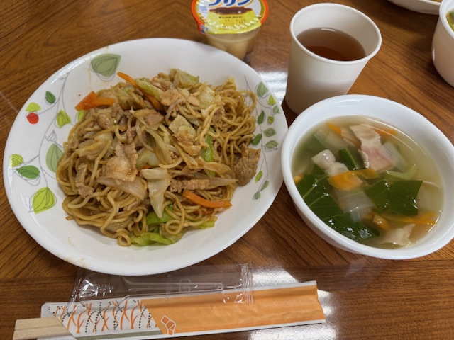人数が少なかったので、早めにご飯を食べ終わり、みんなで四葉のクローバーを探しに行ってきました。たくさん見つかって大喜びです。今回は、焼きそばです。たまには麺類もいいですね。