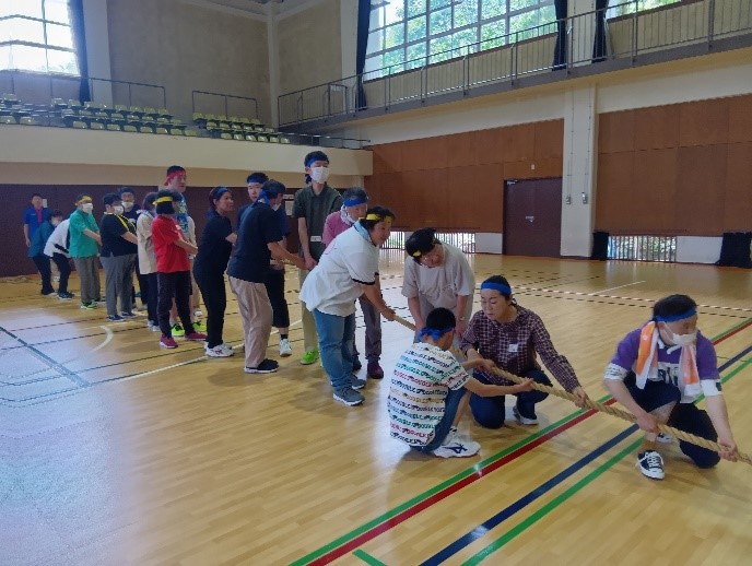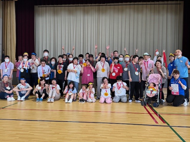 6月21日(土)に草津町総合体育館で、長野原町、草津町の社会福祉協議会と合同で、なかよしクラブの運動会が行われました。参加者、ボランティア、スタッフ合わせて61名の参加者で、にぎやかに開催できました。競技はかけっこ、玉入れ、借り物競走など盛りだくさんで、皆さん楽しそうに参加してくれました。草津は涼しいように感じましたが、競技が始まると皆さんの熱気もあって汗びっしょりになりました。参加してくださった皆さん、ありがとうございました。