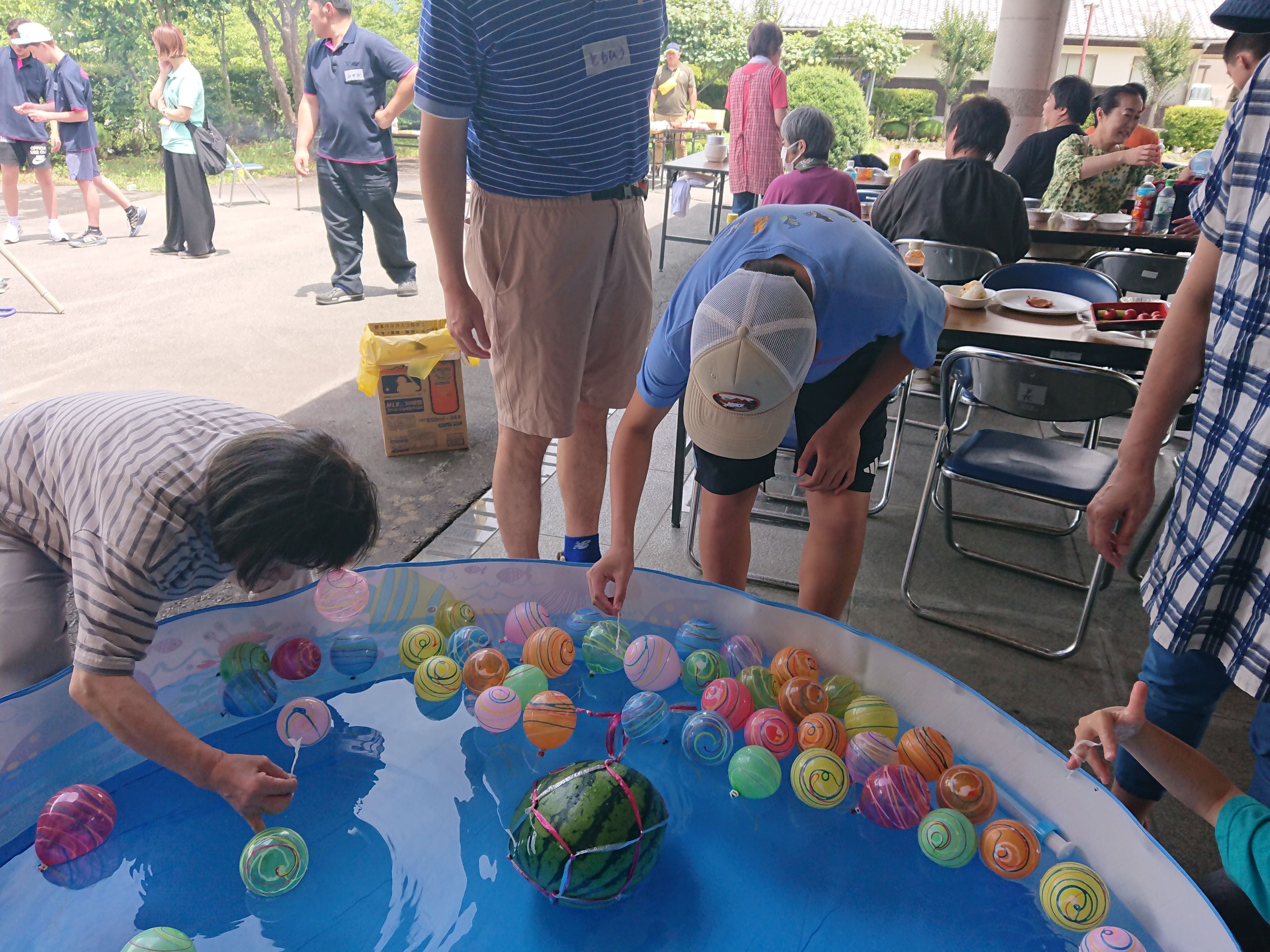 参加者、ボランティア、スタッフ合わせて53名の参加者でした。美味しいお肉に流しそうめん、落書きせんべいやヨーヨー釣りもあって楽しい会となりました。参加してくださった皆さん、ありがとうございました。