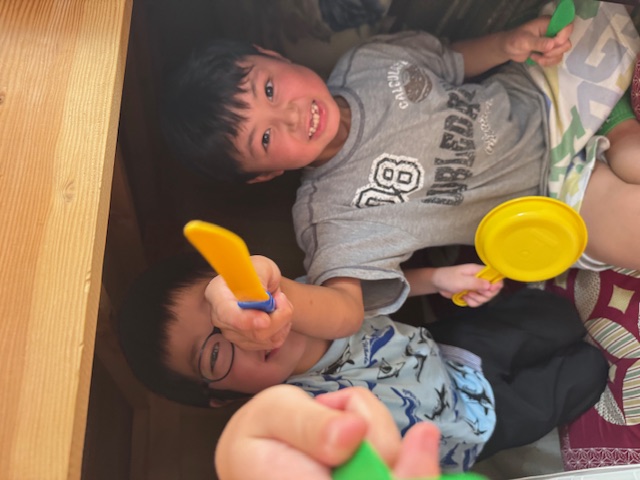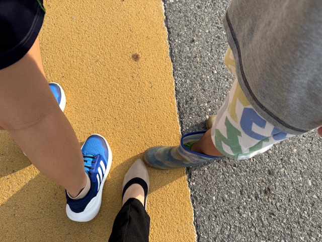雨上がりに校庭まで散歩をしてきました。子どもが履いている靴の種類がみんな違うと言って、思わず写真を撮ってしまいました。ヒールのコツコツした音がいいねと言ってくれて嬉しかったです。今回のメニューは子供たちが大好きなチーズカレーライスでした。作ってくださったボランティアさんに感謝してごちそうさまです。