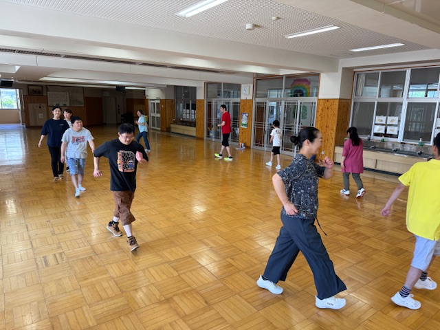 ダンス・ダンス・ダンスは、月に1回、知的障害者の余暇活動として、講師の先生をお招きし、ダンス教室を行っています。今回はいつもより少人数でしたが、めいっぱい踊って、たくさん汗をかきました。熱中症に気を付けながら活動を行っていきたいです。