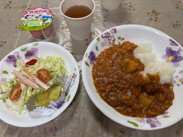 <メニュー:ハヤシライス、サラダ、ヨーグルト>