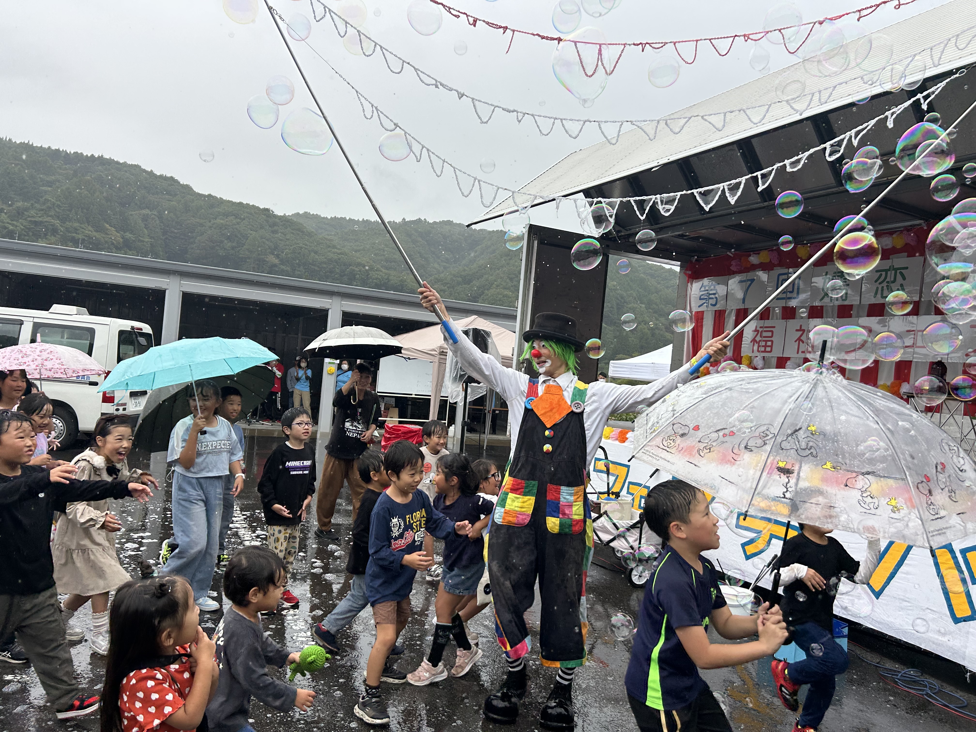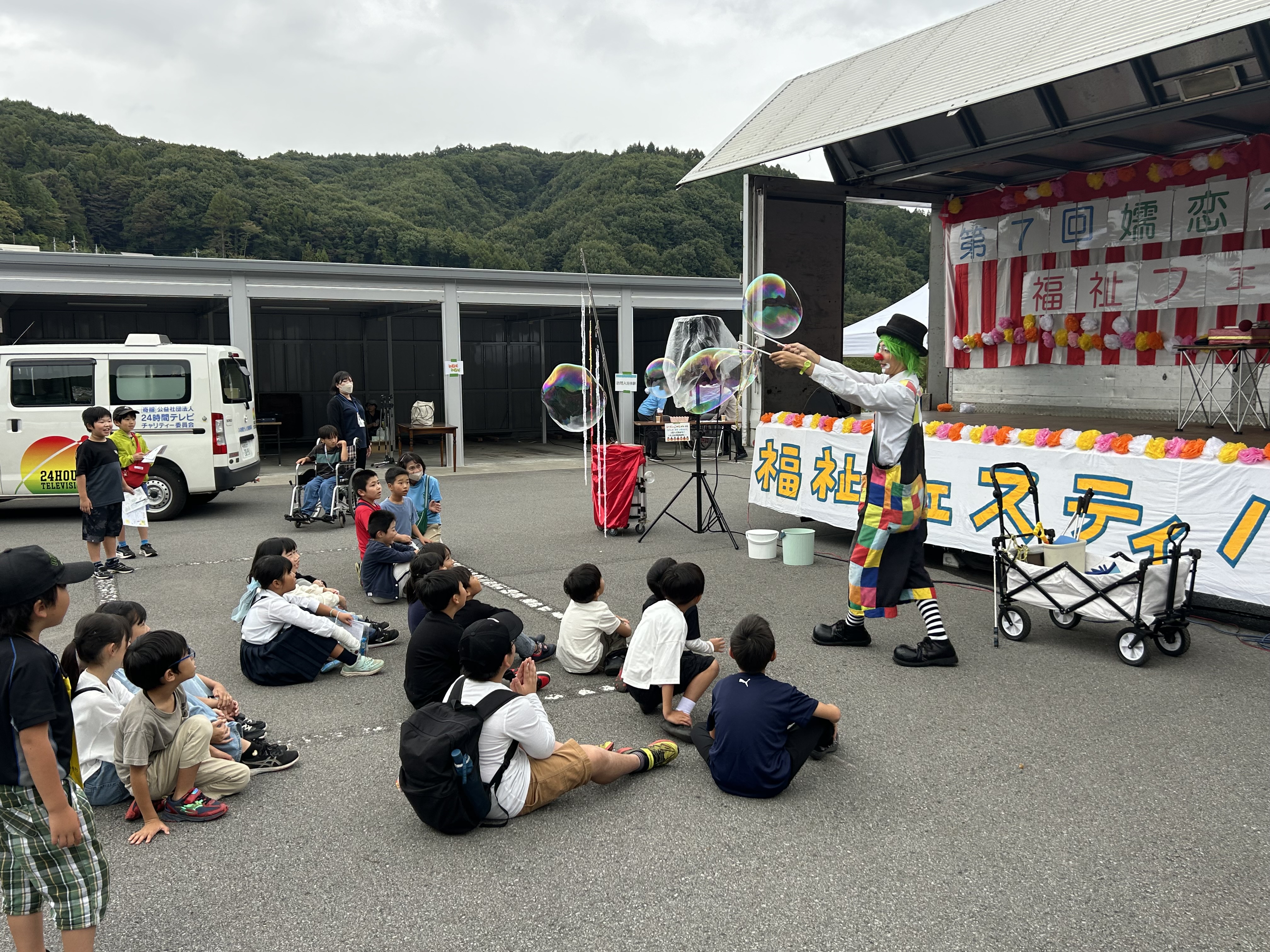 10月5日(日)に開催しました、第7回福祉フェスティバルのレポートの第3弾です。ステージコーナーのスペシャルゲストは、大道芸クラウンじーにょです。シャボン玉の幻想的な世界に子供も大人も思わず歓声をあがりました。素敵な時間をありがとうございました。