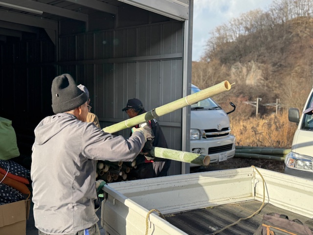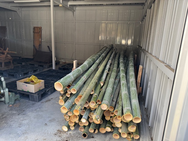今年もこの時期がきました。立派な門松用の竹がやってきました。これから、本格的に門松作りの作業が始まります。ご注文された方は楽しみにお待ちください。(なお、今年度の門松の注文受付は終了しております。ご了承ください。)