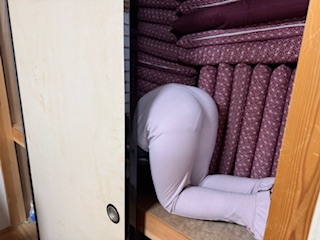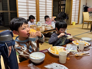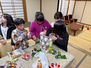 今回は、嬬恋村農協女性部様がフードドライブで集めてくださったお菓子を食堂へ持ってきてくださりました。子供たちは大喜びで、お菓子争奪戦が行われました!毎年、ありがとうございます。今年度のみんなの水曜食堂は今回で最後となります。ご利用いただきました参加者の皆さん、いつも美味しいお料理を作ってくださるボランティアの皆さん、食材を提供してくださる地域の皆さん、ありがとうございましたこれからもよろしくお願いします。来年は1月14日から再開です。最後に、かくれんぼの様子です。「頭隠して尻隠さず」お尻が見えて、隠れているのが見つかってしまいました。