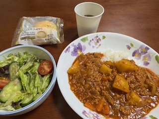 <メニュー:水食特製ハヤシライス、サラダ、選べるスイーツ>