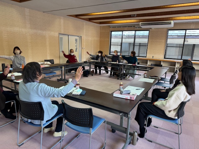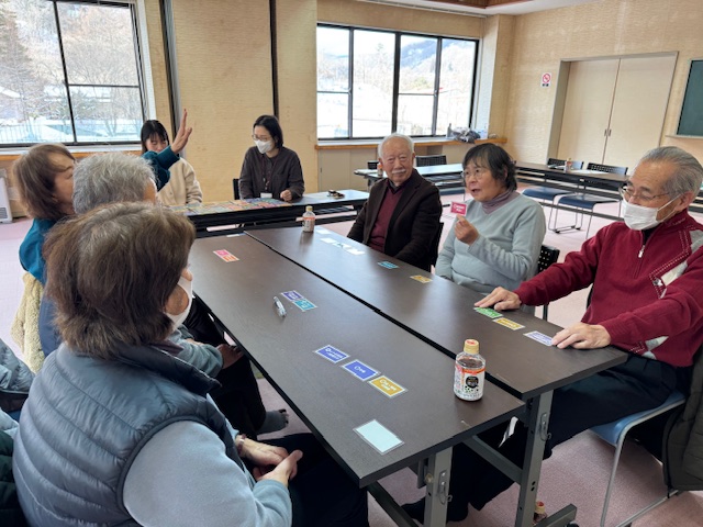 生活支援コーディネーターの大井です。1月13日(火)、令和7年度第7回生活支援体制整備事業協議体【チームちょこっと】の定例会議を行いました。チームちょこっとは「誰もが安心して暮らしていけるむら」をスローガンに、住民・関係機関・行政・社協などで話し合いを行っています。定例会議の前には、必ずアイスブレイクとしてシナプソロジーをして体と頭を活性化してから始めています。今回は来月に嬬恋高校1年生との交流会があるため、来月に行う助け合い体験ゲームをやってみました。高校生を楽しく迎えるために皆さん、色々な意見を出し合っていました。来月が楽しみです。