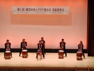 そして発表会の締めくくりを飾ったのは、清流太鼓保存会の皆様。迫力ある太鼓の演奏が会場を包み込み、最後にふさわしい力強いステージとなりました。お帰りの際に皆様から、「楽しかったよ」「またやろうね」「お疲れ様」など感動とねぎらいのお言葉をかけていただきました。やるだけではなく、見たり、聞いたり、話したり、「みんなが出かけてきてくれる老人クラブにしたい」という山﨑会長が大切にしてきた思いが、形になった発表会となりました。
