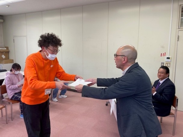 嬬恋村熊川栄村長の代理で黒岩彰副村長と野寺健康福祉課長、それから講師を引き受けてくださった介護屋かんばらの佐藤代表社員にご臨席賜り、閉講式と修了証授与式を執り行いました。