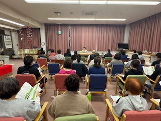 2月27日(金)、令和7年度第4回職員研修を開催しました。今回は1部に、認知症の人と家族の会群馬県支部世話人の水出氏を講師に、「認知症介護家族の心理と現状~電話相談の現場から~」として、実際に認知症のご家族を介護された体験談やご家族の心理ステップなど聞くことができ、いつもとは違ったアプローチで認知症について知ることができ大変勉強になる講義でした。2部は土砂災害の初期対応実施訓練として、オクレンジャーを活用した安否確認の訓練とその講評が行われました。訓練ではありましたが、訓練から5時間で8割の方が既読になり、7割の方の回答がありました。実際に発災が起こった時に活かしていきたいです。