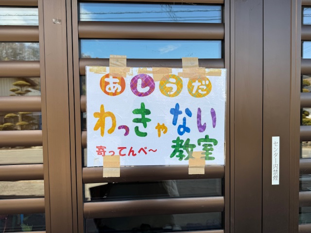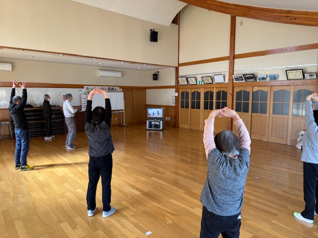 あしうだわっきゃない教室へ行ってきました。毎週1回、通いの場としてフレイル予防を行っています。新しい参加者もおり、運動をしたりギターの生演奏で歌を歌ったりと楽しい時間を過ごしています。これからも声を掛け合って続けてほしいです。